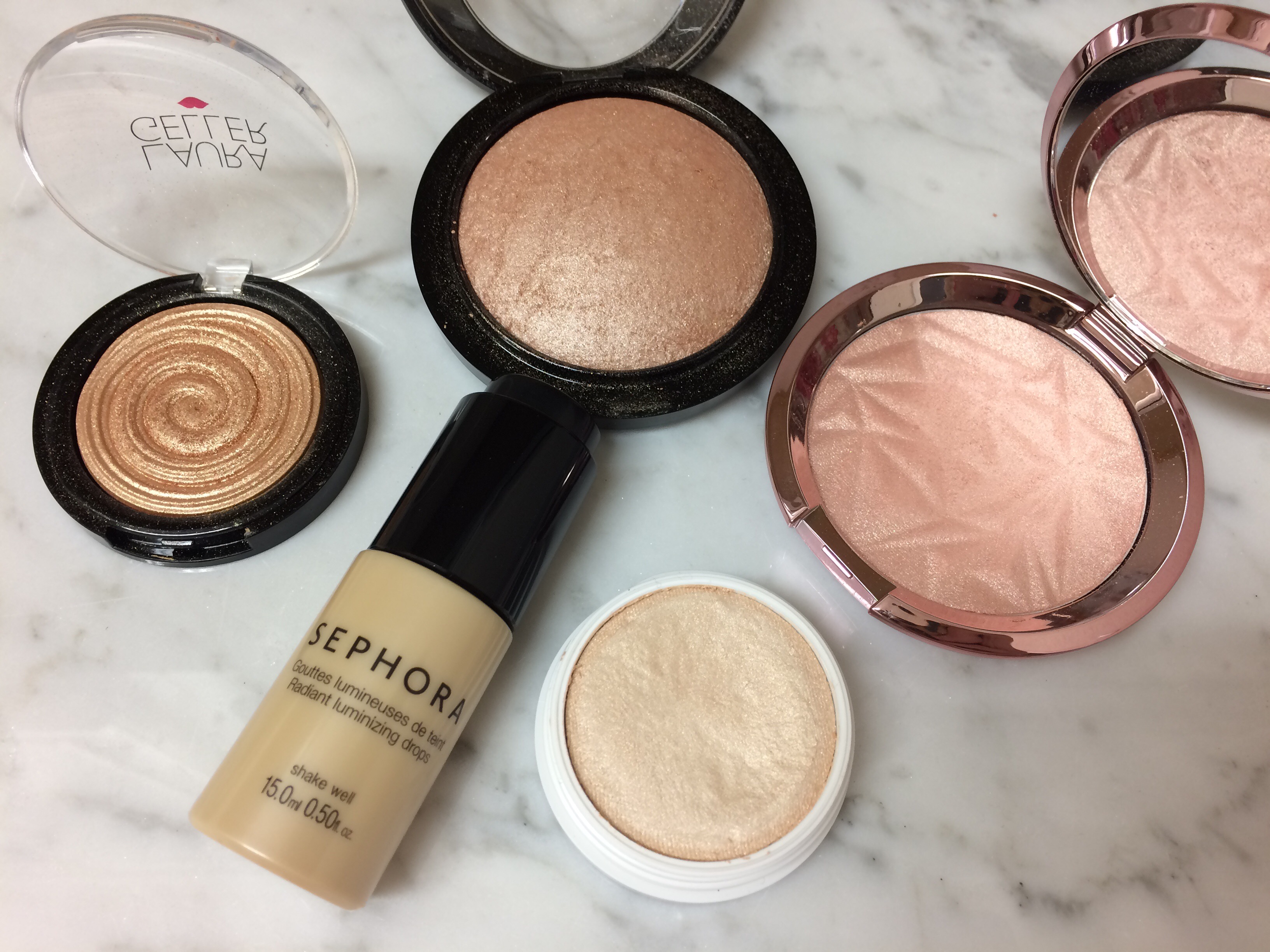 I love a bold highlighter. It might not look natural, but I LOVE IT and I want to look totally glowy. Today I am showing you my top five blindingly bright highlighters. These highlighters might start out subtle, but I like to pack them on for maximum effect!