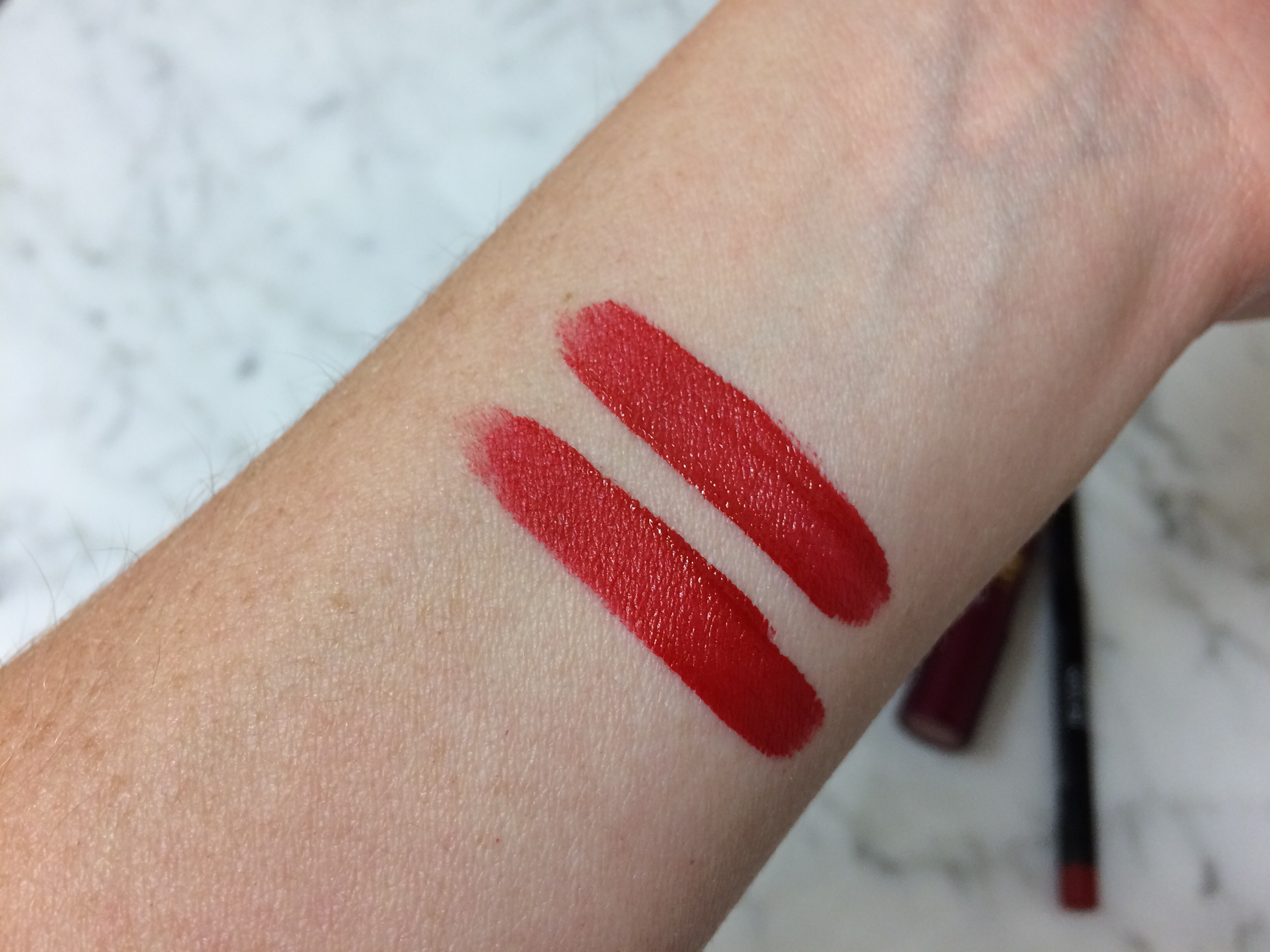 I have two matte liquid lipstick favorites, Stila Stay All Day in Beso, and Sephora Collection Cream Lip Stain in Always Red. Both have really nice staying power, but I do prefer Always Red, because it’s more comfortable on the lips, and these Sephora Lip Stains are BOMB. They LAST. As you can see, the shades here are almost identical!