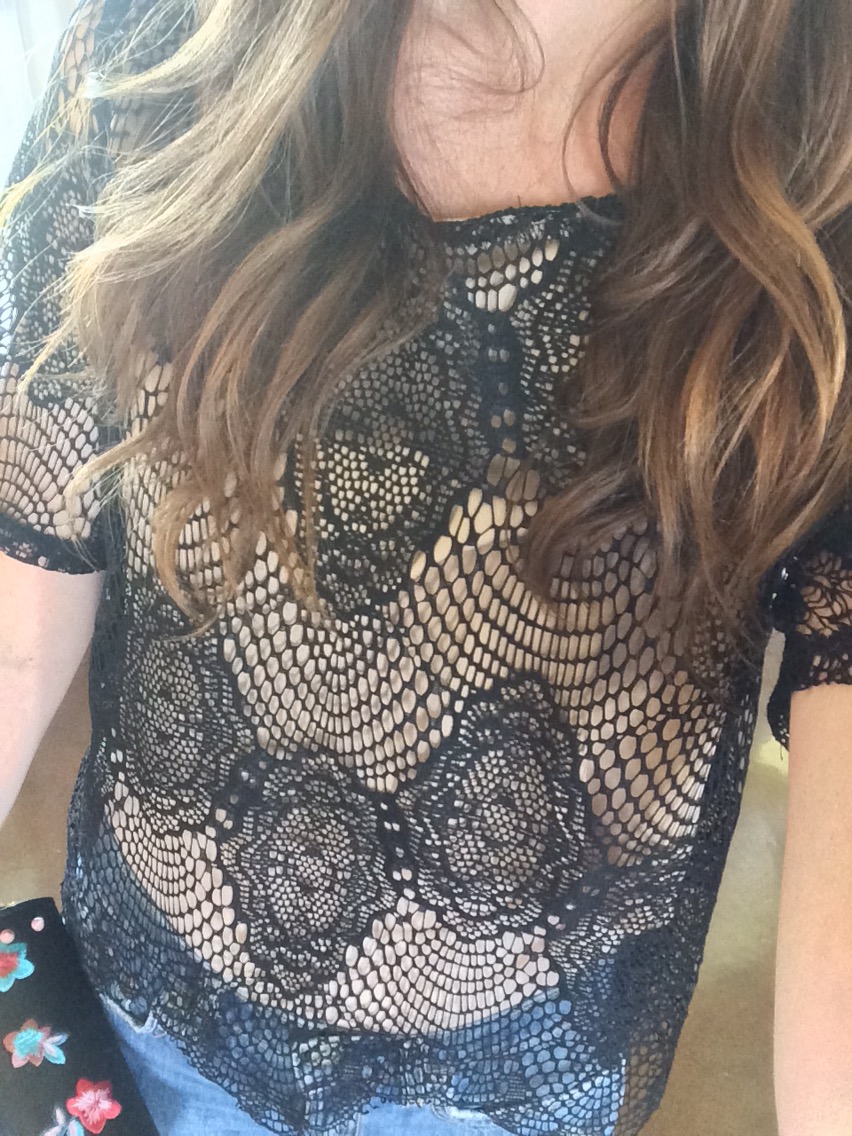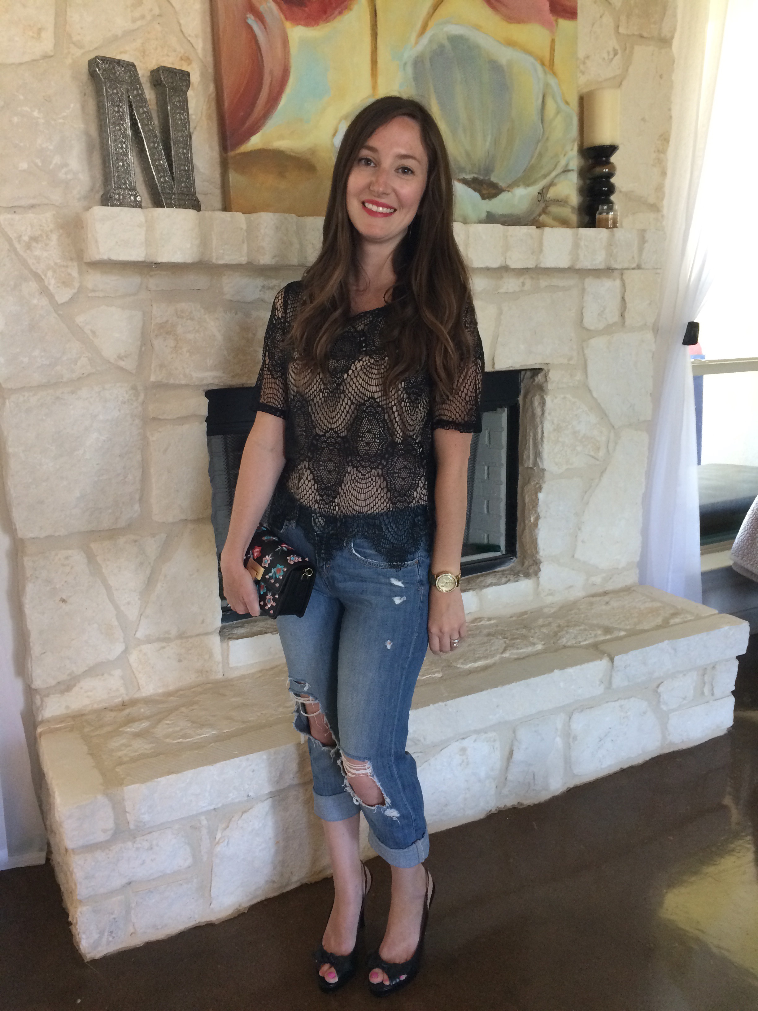 This outfit is the most dressy option, but still not over the top. I paired the jeans with a black lace overlay top that I think really makes the outfit look fancy.