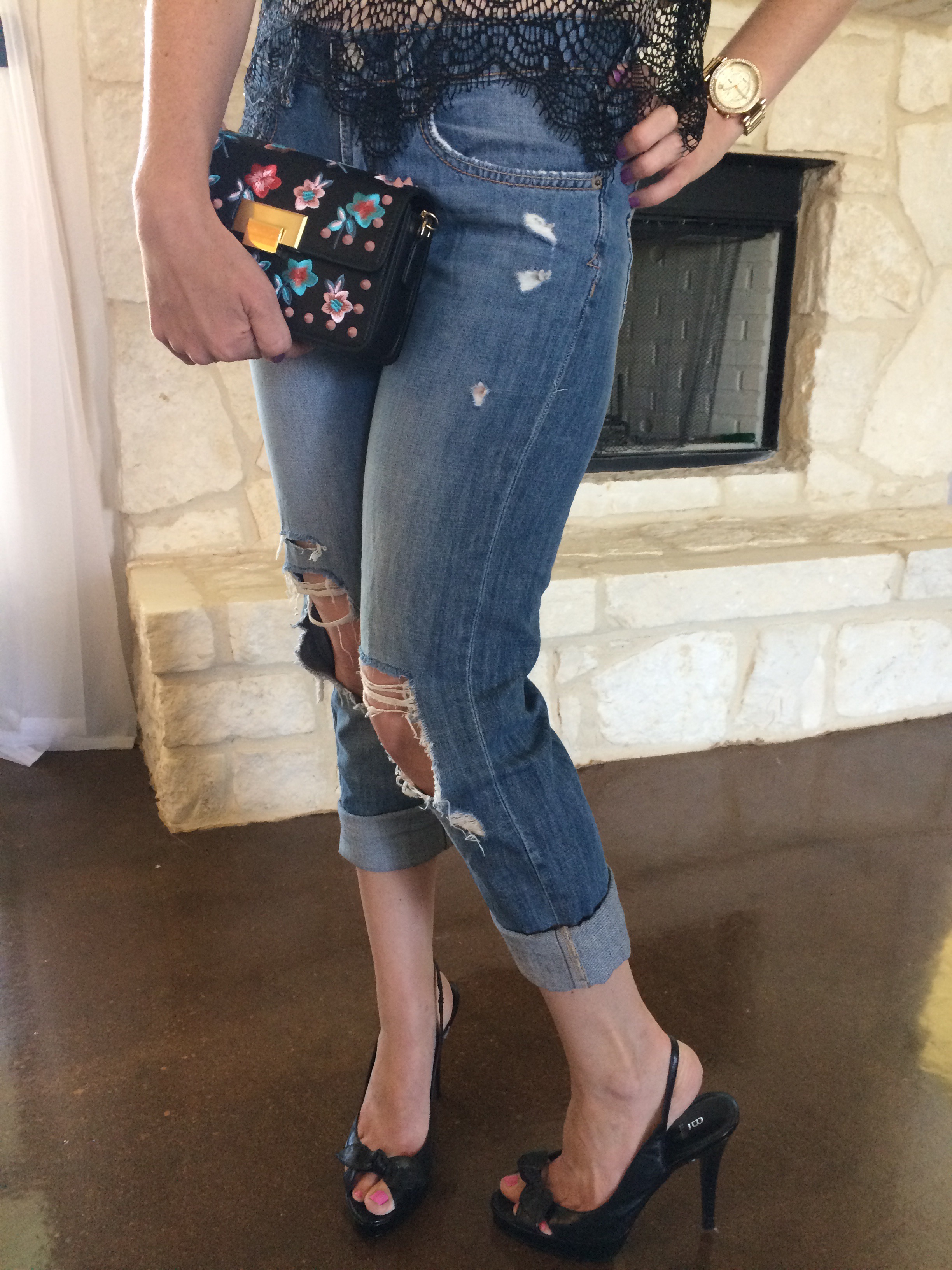Boyfriend jeans are sometimes a tricky trend to pull off. Most boyfriend jeans have huge rips or holes in them (like mine), and they also have a baggier fit around the legs. I like to cuff mine at the bottom because I am on the shorter side, and I don’t want them to look like they’re swallowing me. To avoid them looking sloppy, I like to try and dress them up a bit.