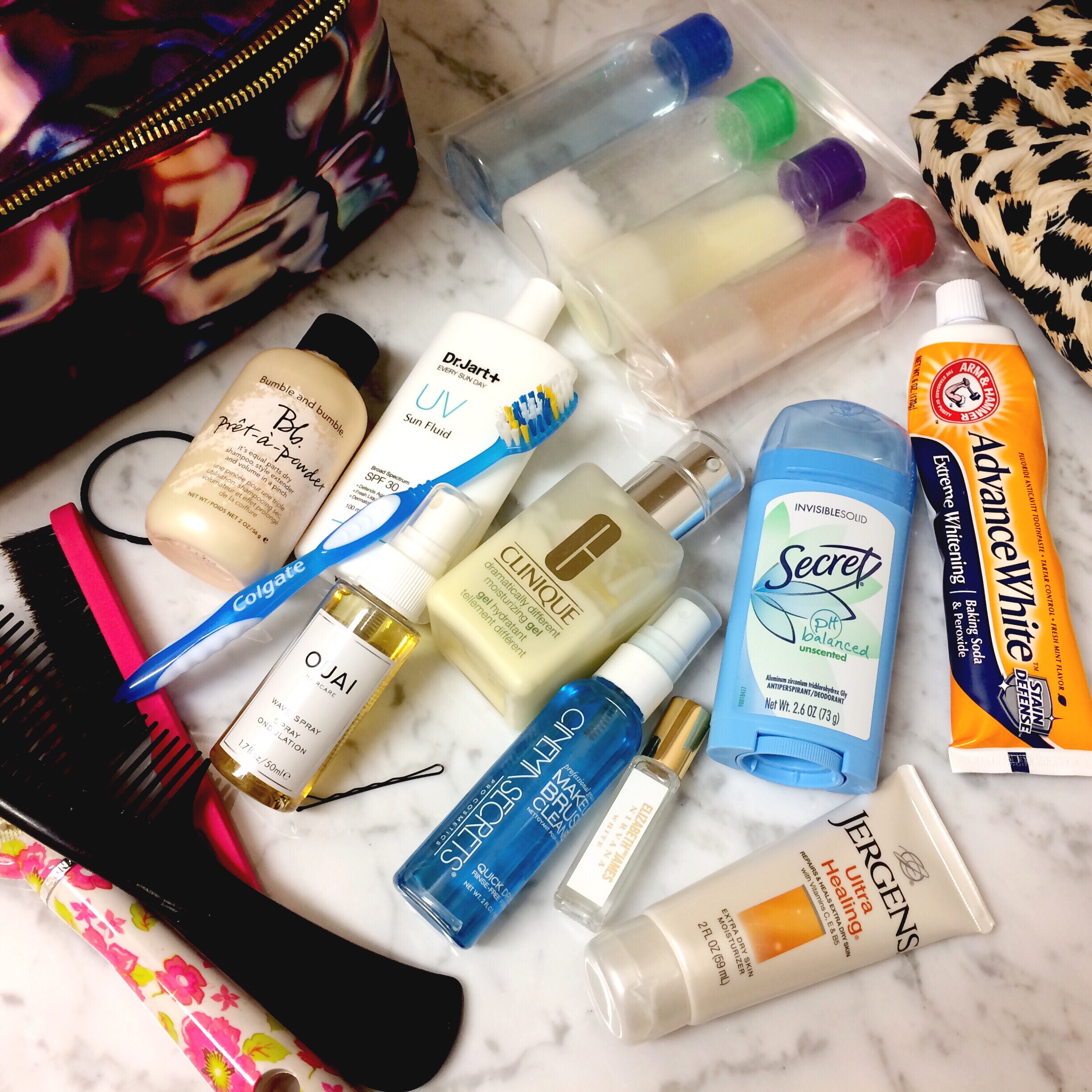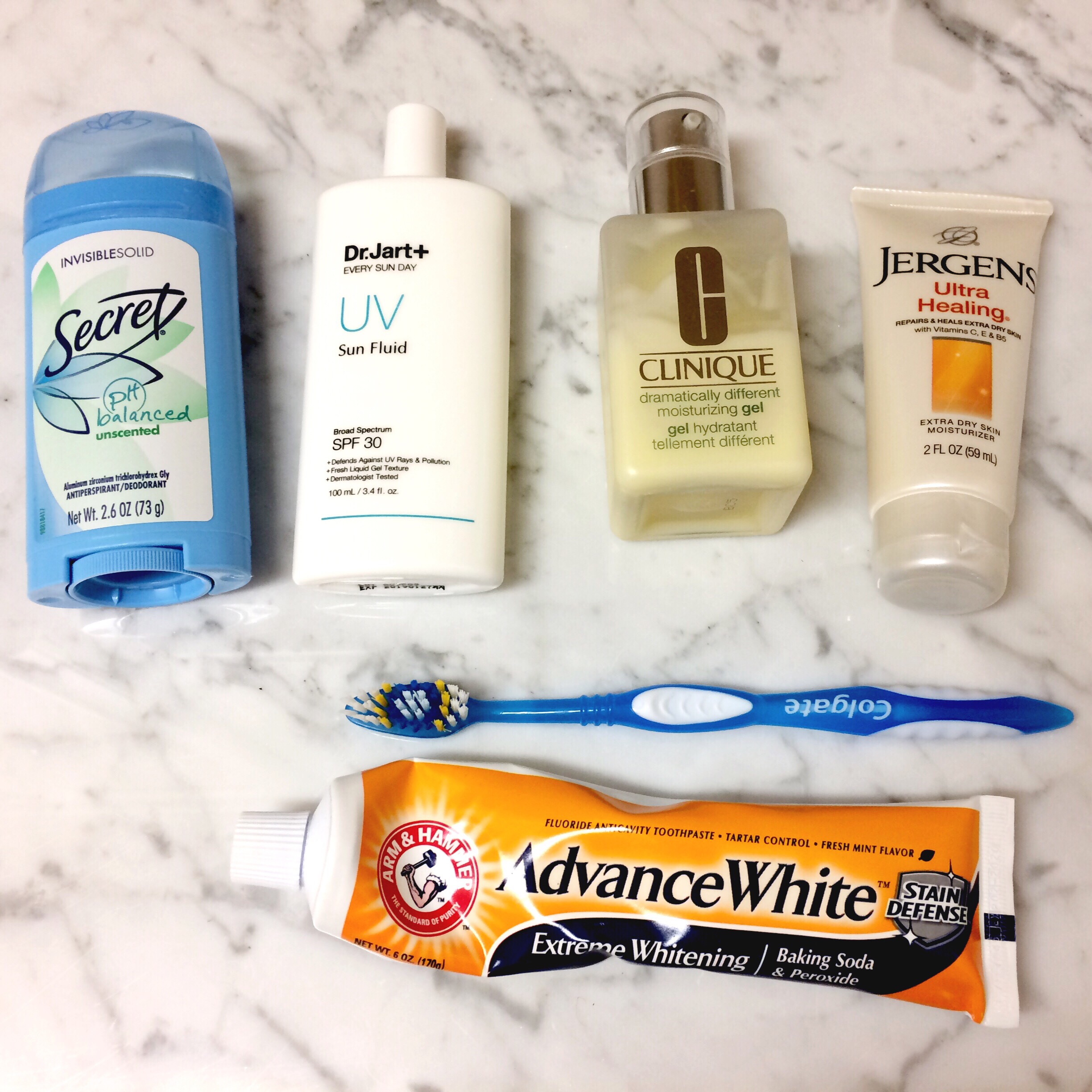 I also pack deodorant, my favorite Dr. Jart Sunscreen, my Clinique Moisturizer, a travel sized lotion, and toothbrush and toothpaste.
