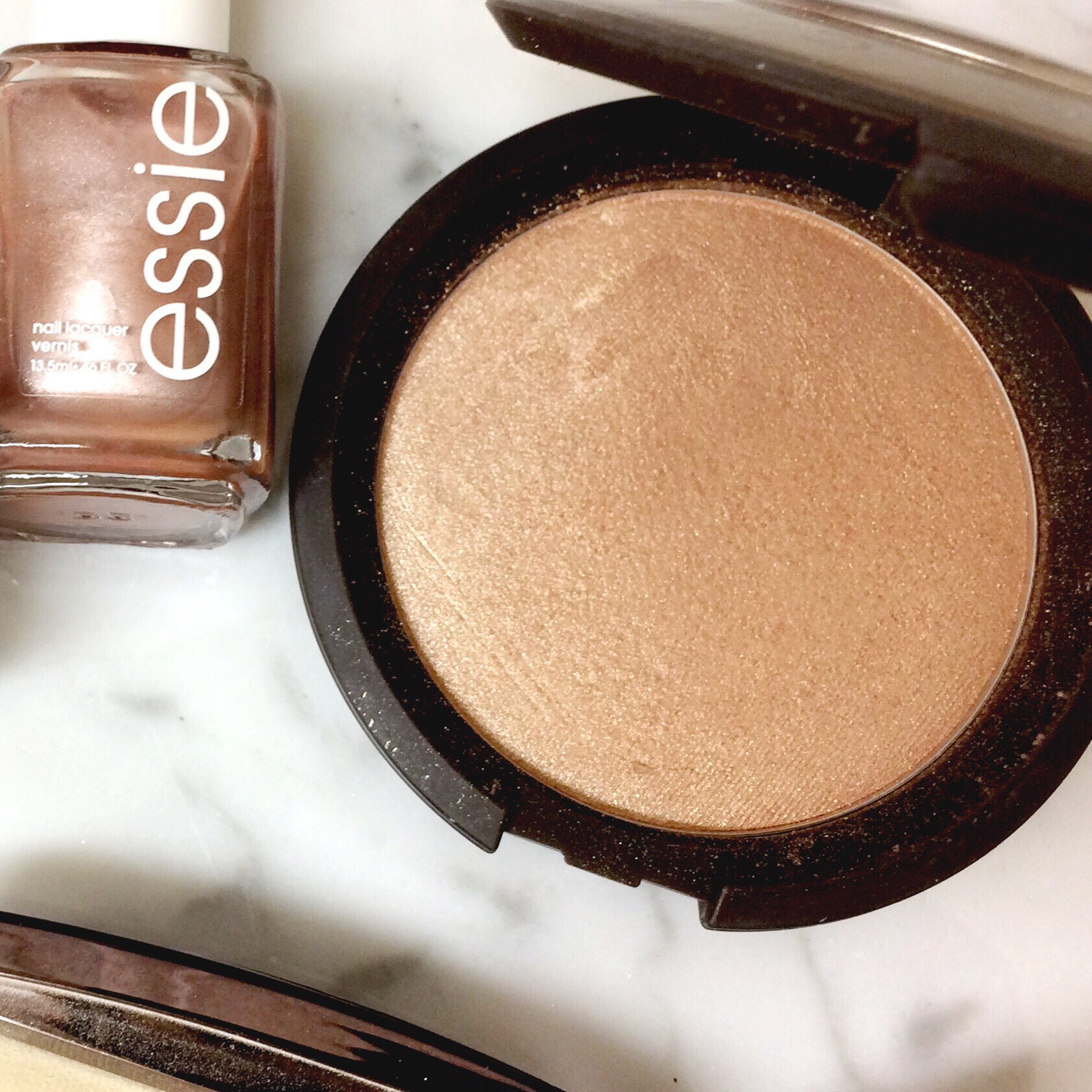 So next, this nail polish from ESSIE. I feel like Essie is kind of known for their beautiful colors- and also their hit or miss formula. This color is a rose gold metallic called Buy Me A Cameo. It is so so pretty in the bottle, but SO STREAKY on my nails. I can’t get this to work for me at all. It won’t go opaque, and no matter how many coats, it still streaks. BOO.
