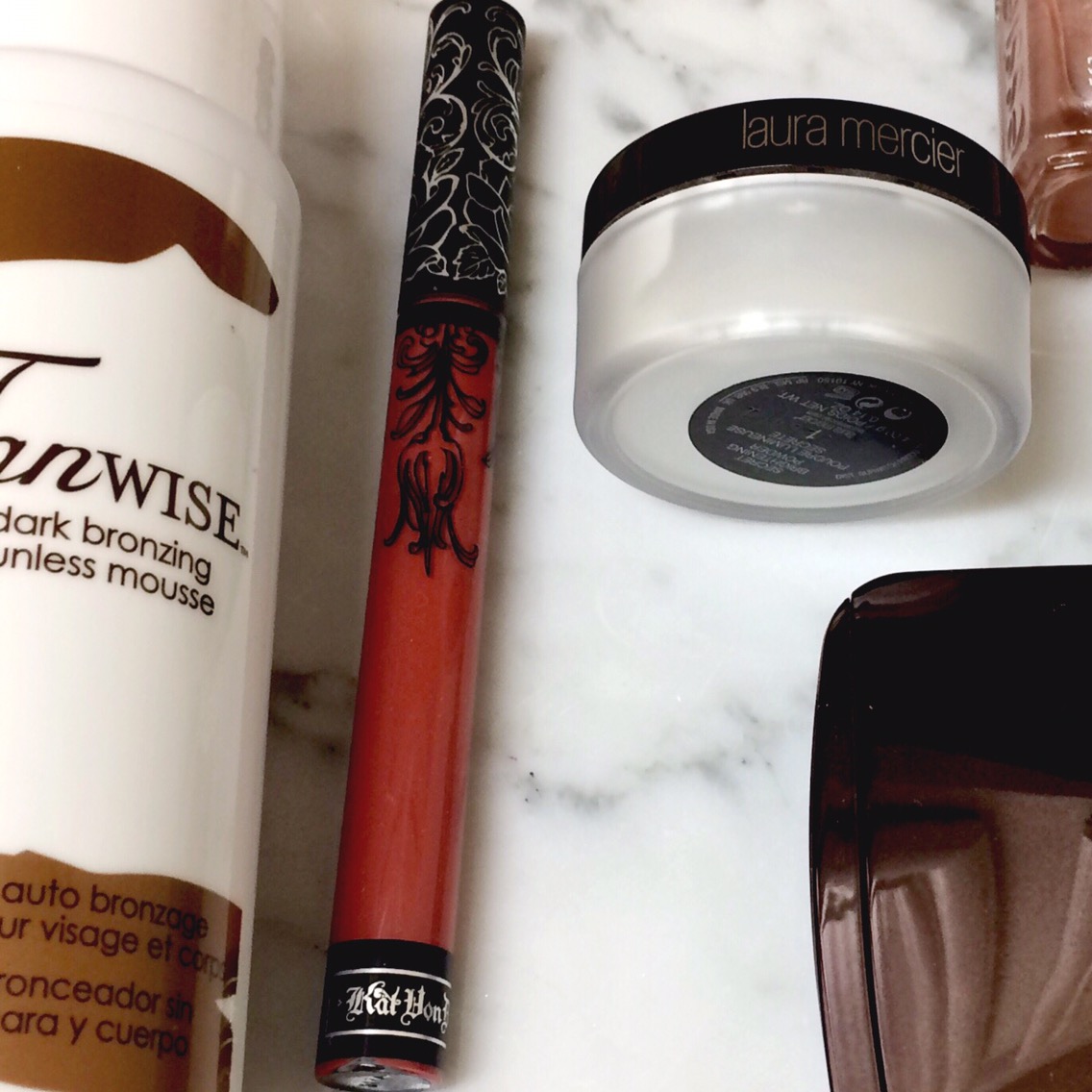 Lastly is a lip product, and a very popular one. This is Lolita by Kat Von D (gasp!). This color is all wrong for me. It is kind of a terra-cotta reddish brown, and it’s too warm for my skintone. It’s the kind of color that just doesn’t suit me, and doesn’t look pretty. I even feel like it makes my teeth look yellow! This is their most popular shade, but I like Lovesick best! Cool tones work much better on me than warm, I guess.