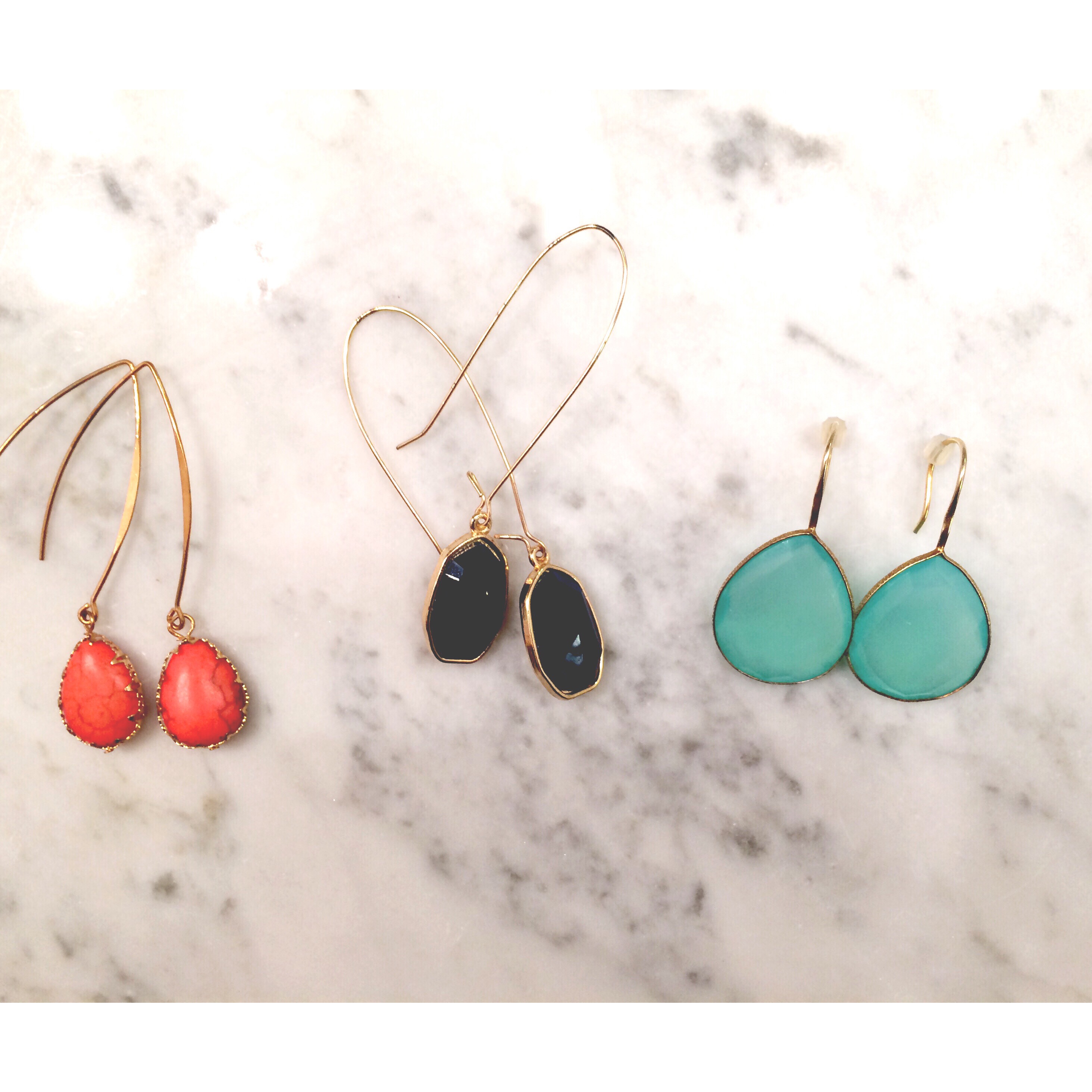Colorful earrings are always a summer staple for me. I love drop earrings with big colorful stones because they instantly dress up the outfit. I actually like not matching up the stone with the color that I’m wearing to keep it interesting.
