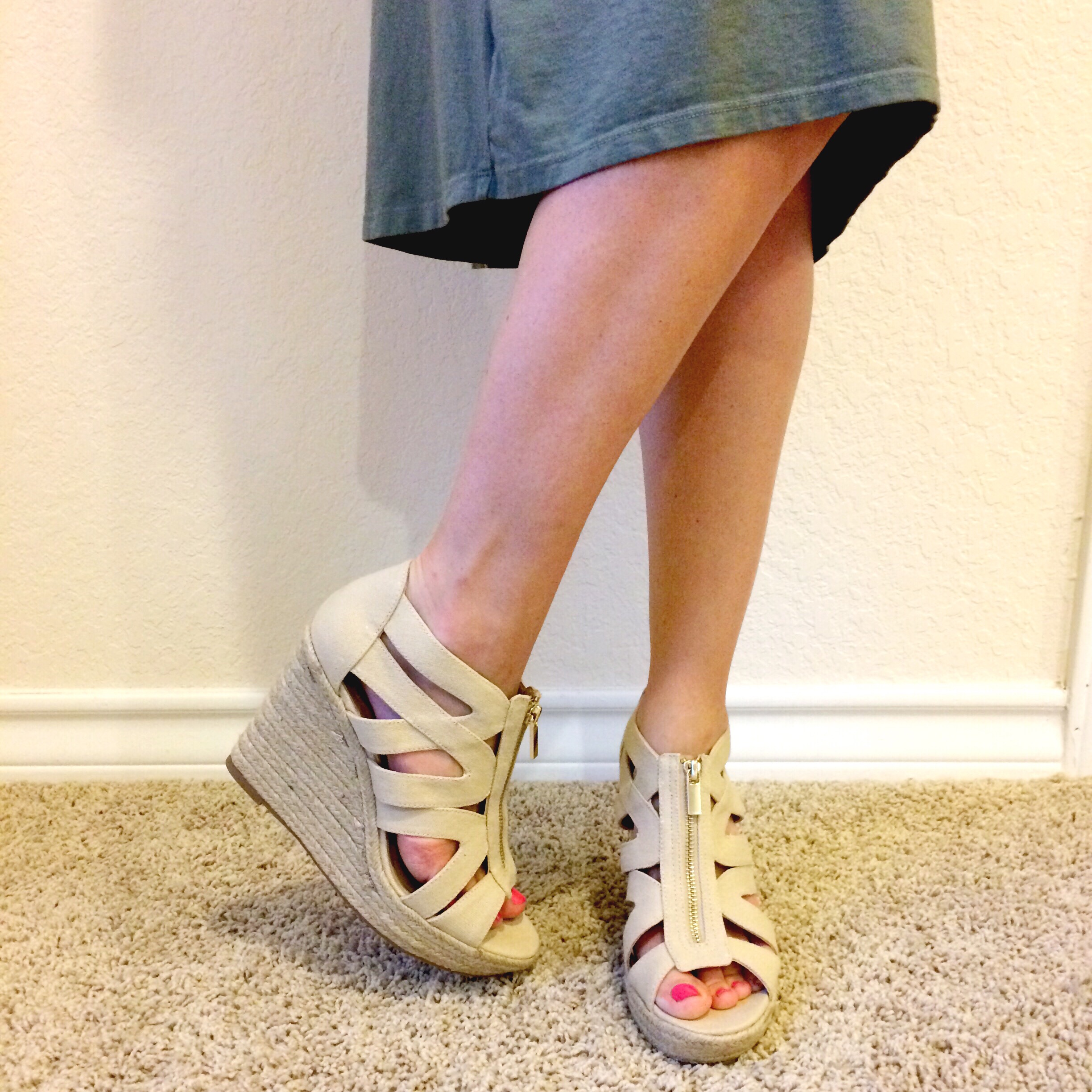 Now I am always up for a good wedge shoe, and these are ADORABLE and go with everything from dresses to shorts. Since they are a wedge, they are so comfortable, and I love the zipper detail.