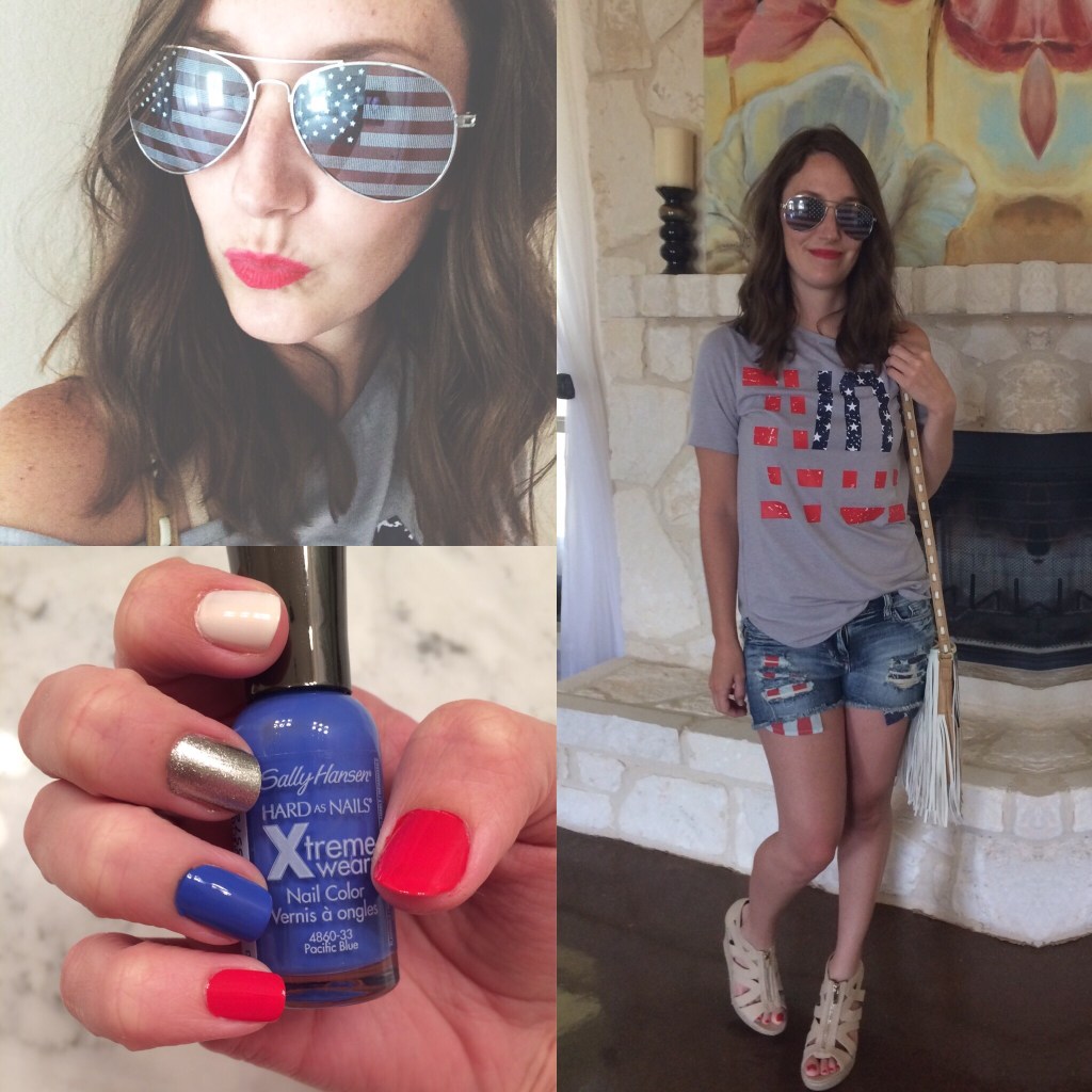 Some fun nails are definitely necessary- and you don’t have to be a nail art expert drawing on stars and stripes.  I like to just paint my nails different colors and I think it looks really cute and patriotic.