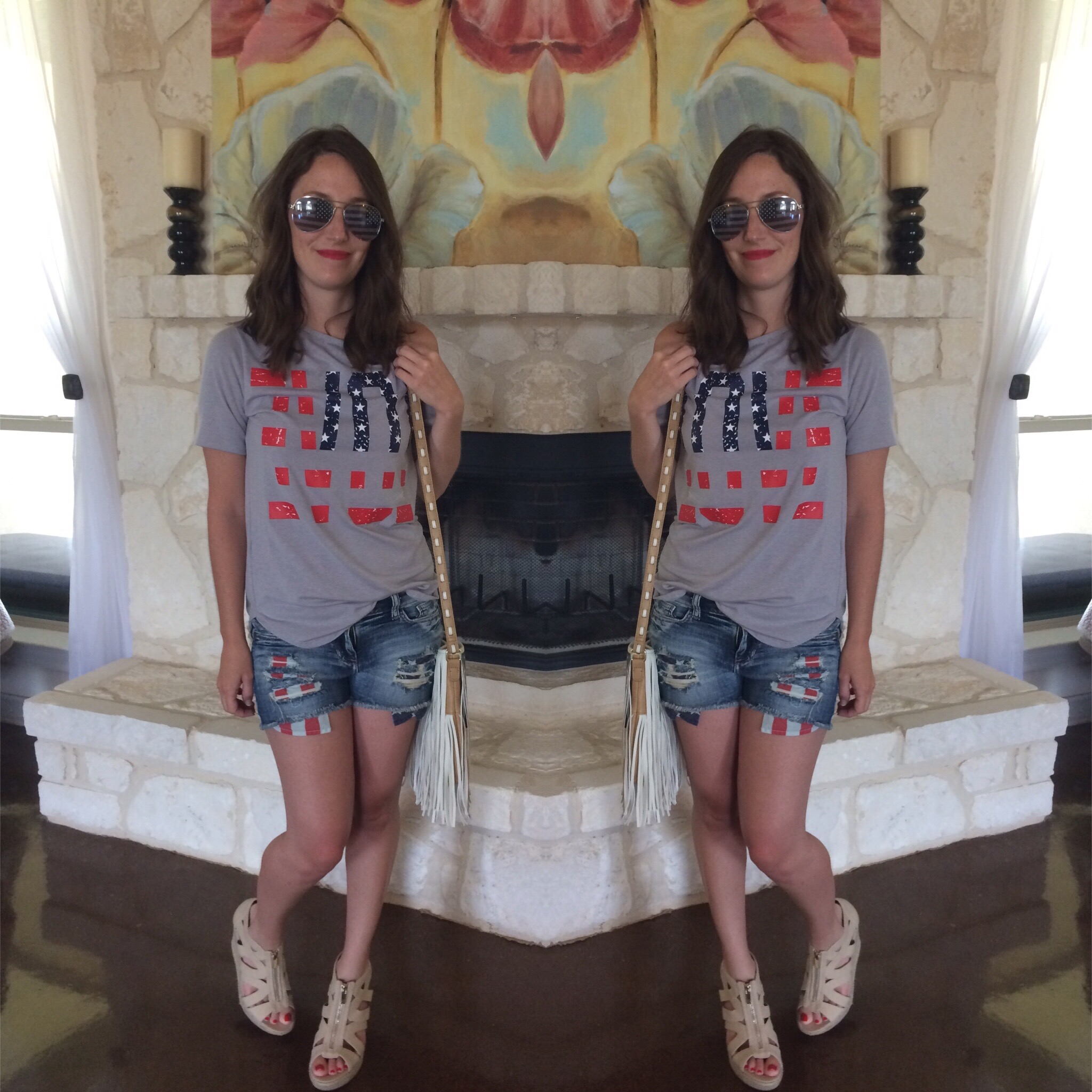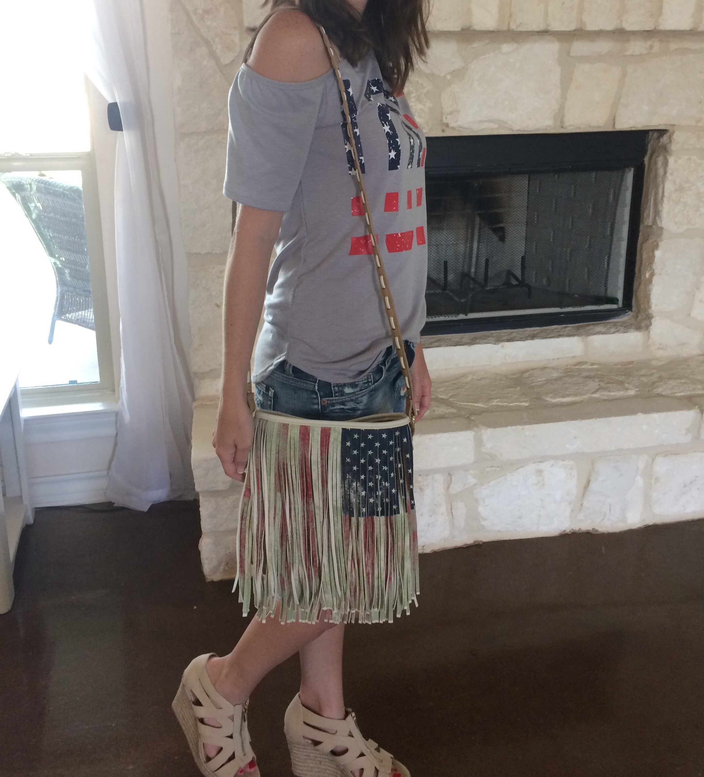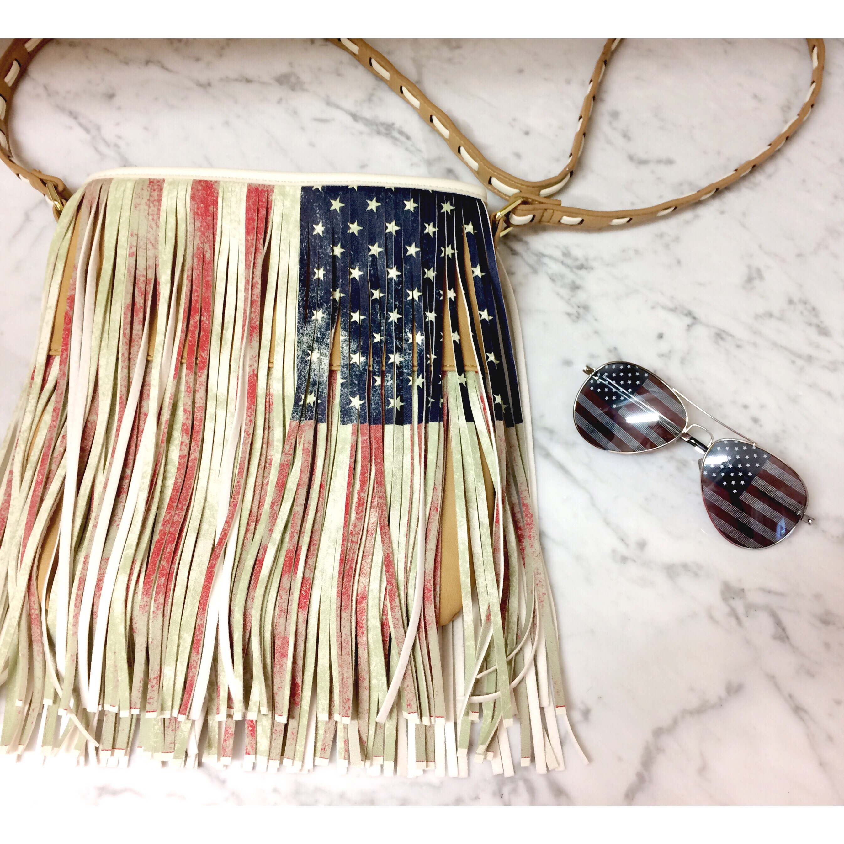 A patriotic bag and sunnies are a definite must.  I bought this bag a few years back from Nordstrom and it is still one of my favorite bags.  It is small and crossbody, but it fits a ton!  Can we talk about this distressed fringe?  Sooo cool, and gives that 70’s boho feel.  I love this bag.  It’s not available anymore, but I found a few on poshmark here.