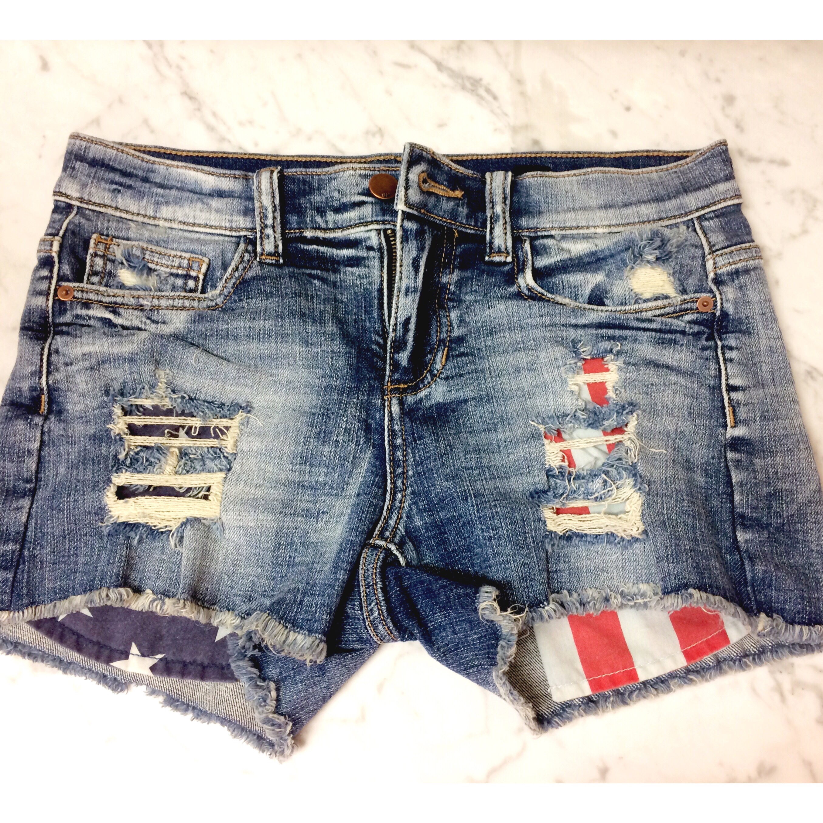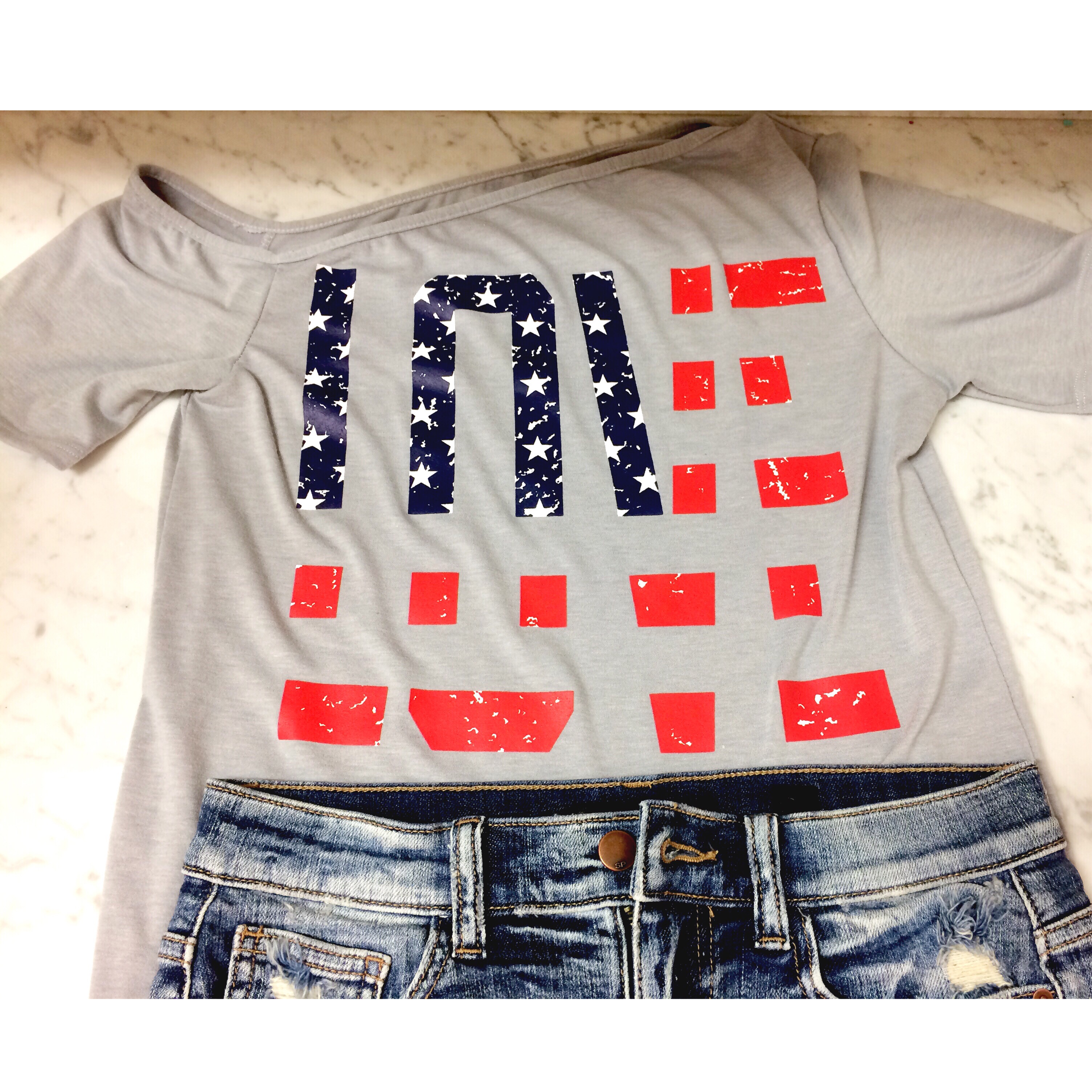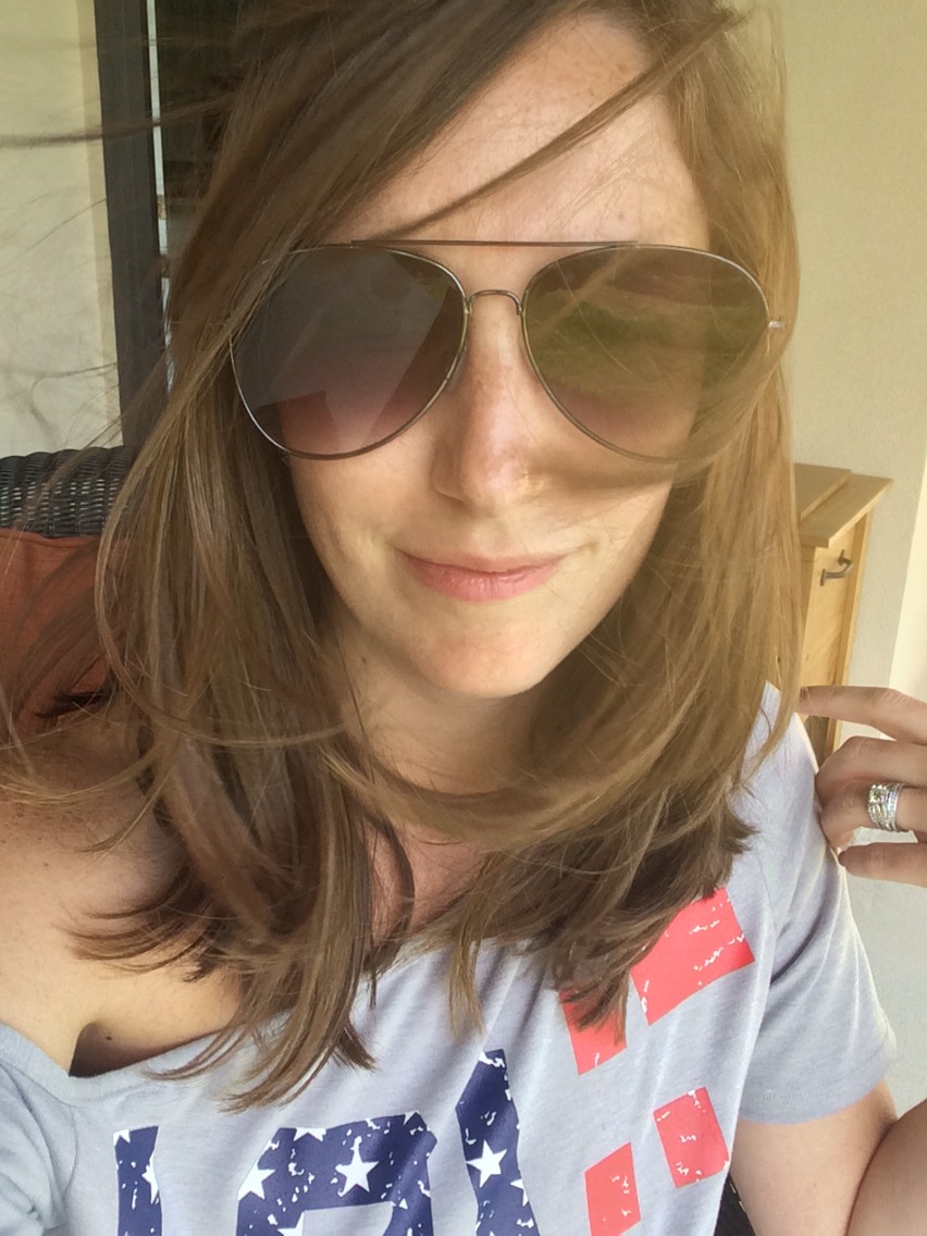 I’m keeping it casual this year- I have a ton of Fourth of July themed tops, dresses, and skirts, but this is what I picked this year.  A simple off the shoulder tee that reads LOVE, and some distressed denim shorts with stars and stripes detailing on the inside pockets.  I love the shirt kind of messily tucked into the front of the shorts.  Very cool.