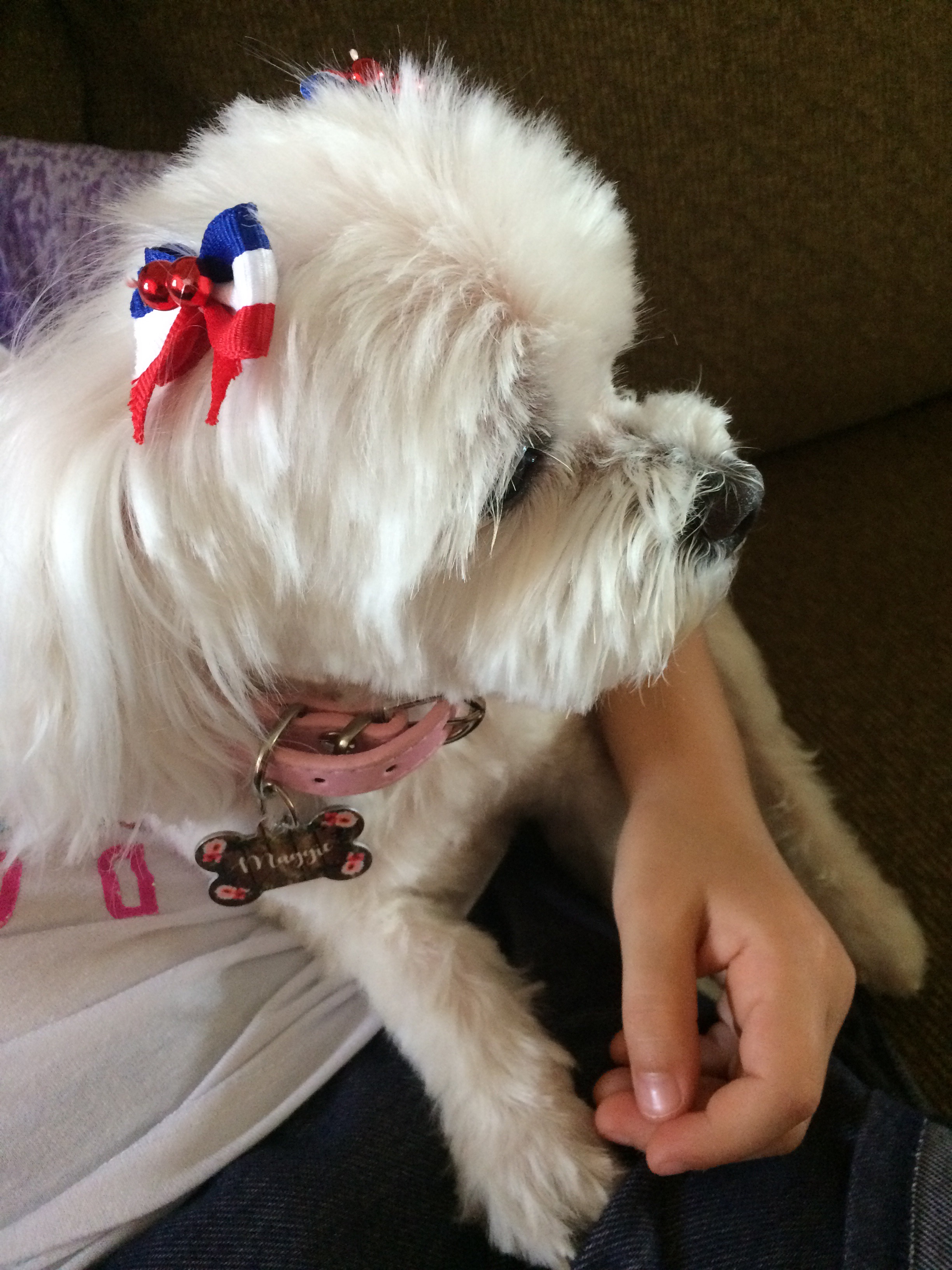 Our doggie groomer even put red white and blue bows on Maggie and Mollie.  We were thrilled!