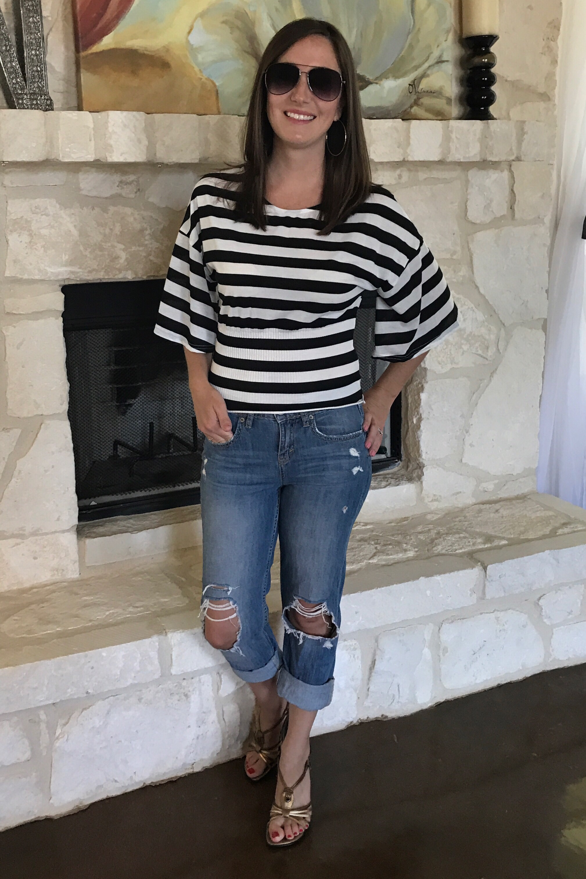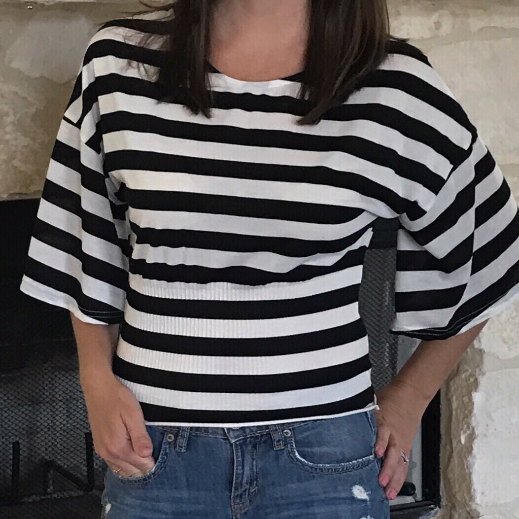 I love black and white stripes, and these flowy sleeves are just everything! This is so comfy, but still a casual t-shirt. It could be dressed up or down, too.