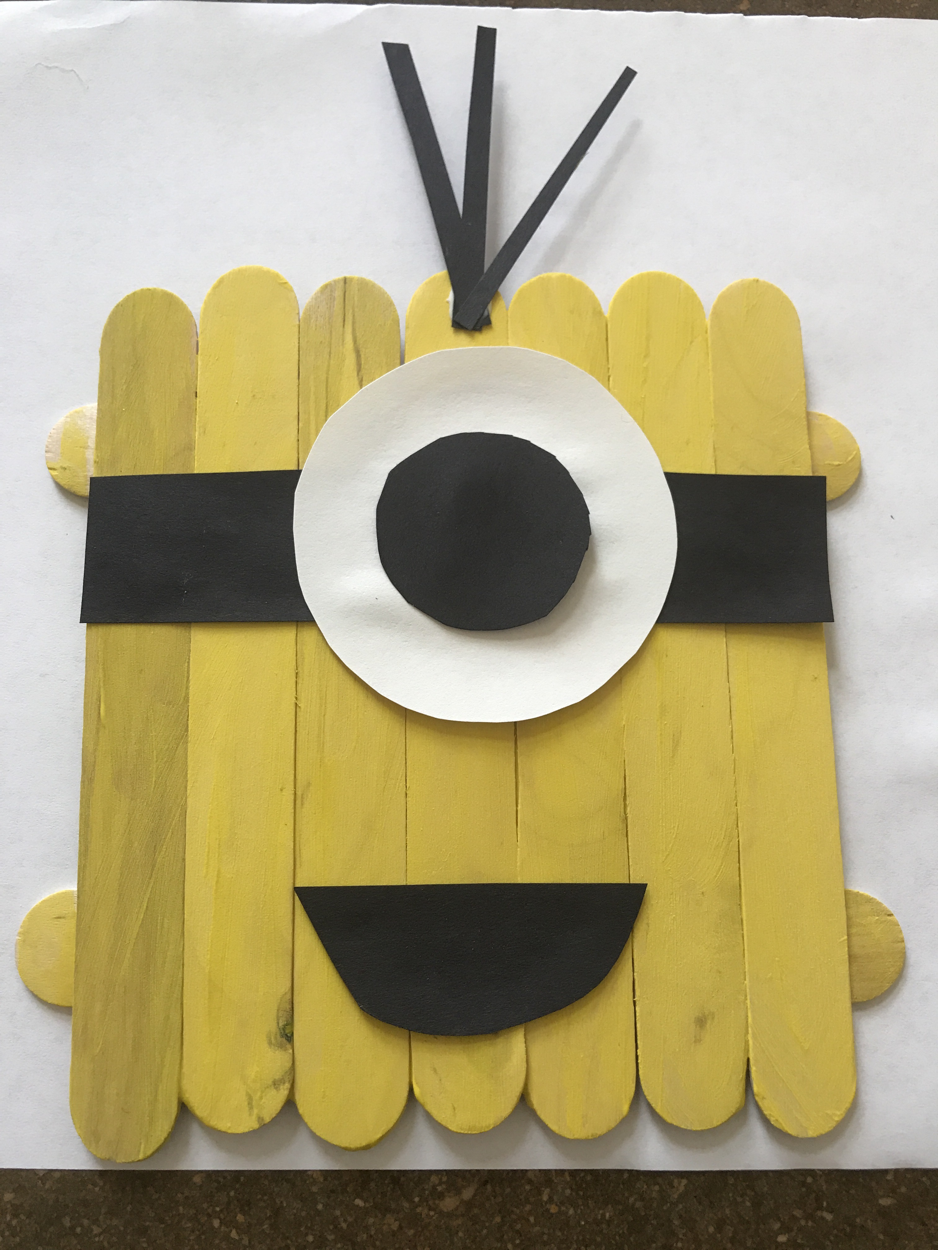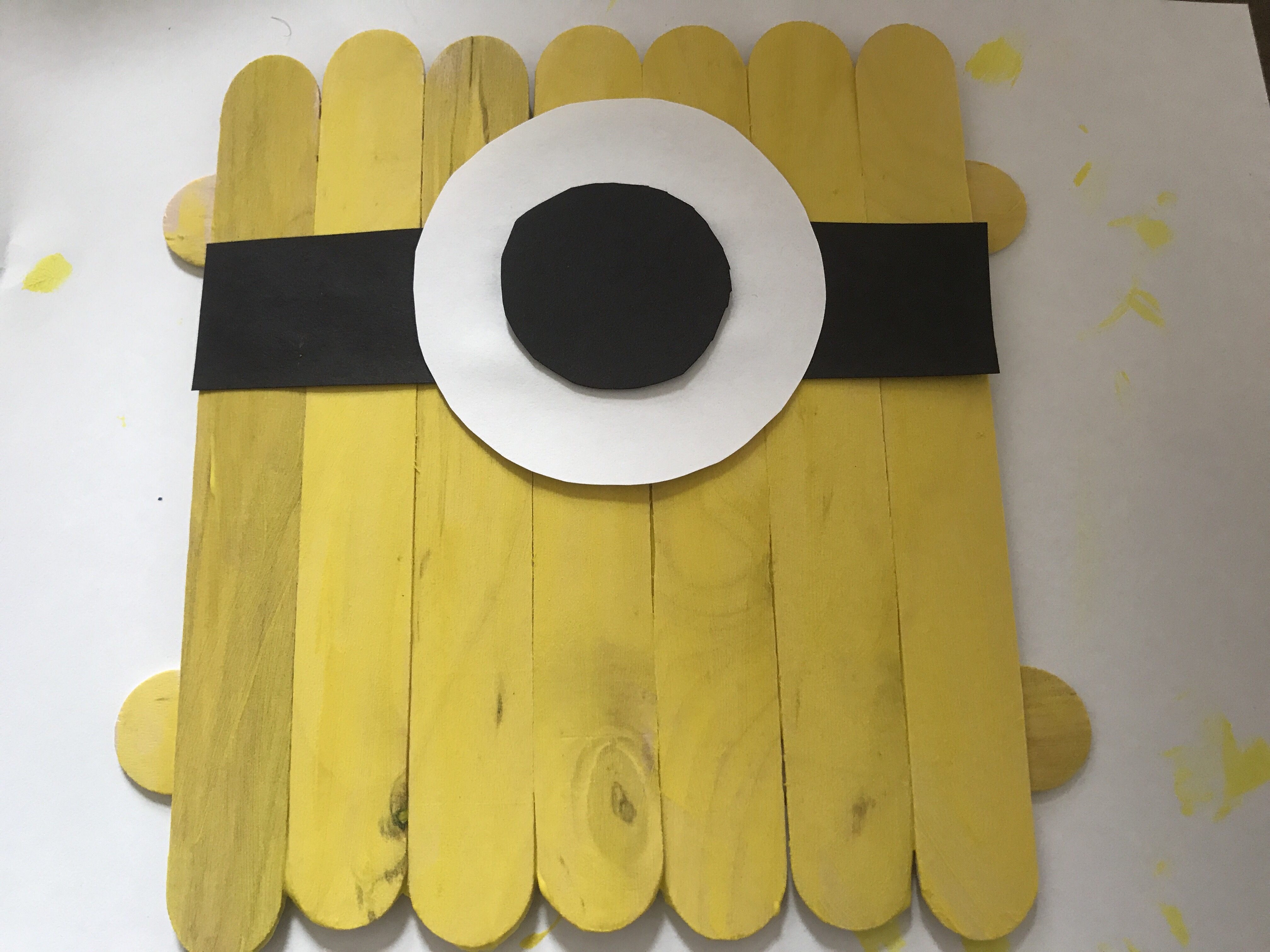 This next craft is just popsicle sticks glued together and then decorated like a little minion face!