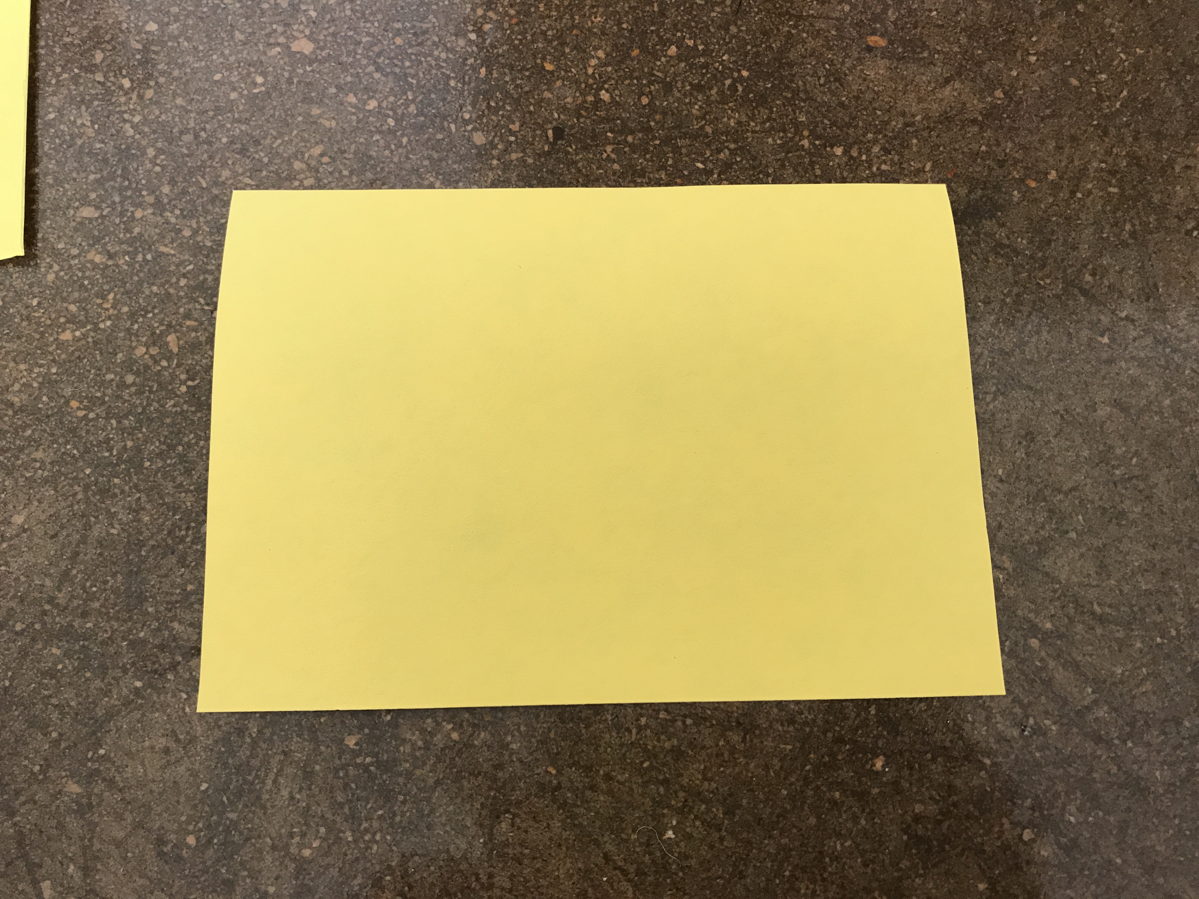 The first thing is to cut out a yellow piece of paper in a 4 x 5 1/2 inch shape.