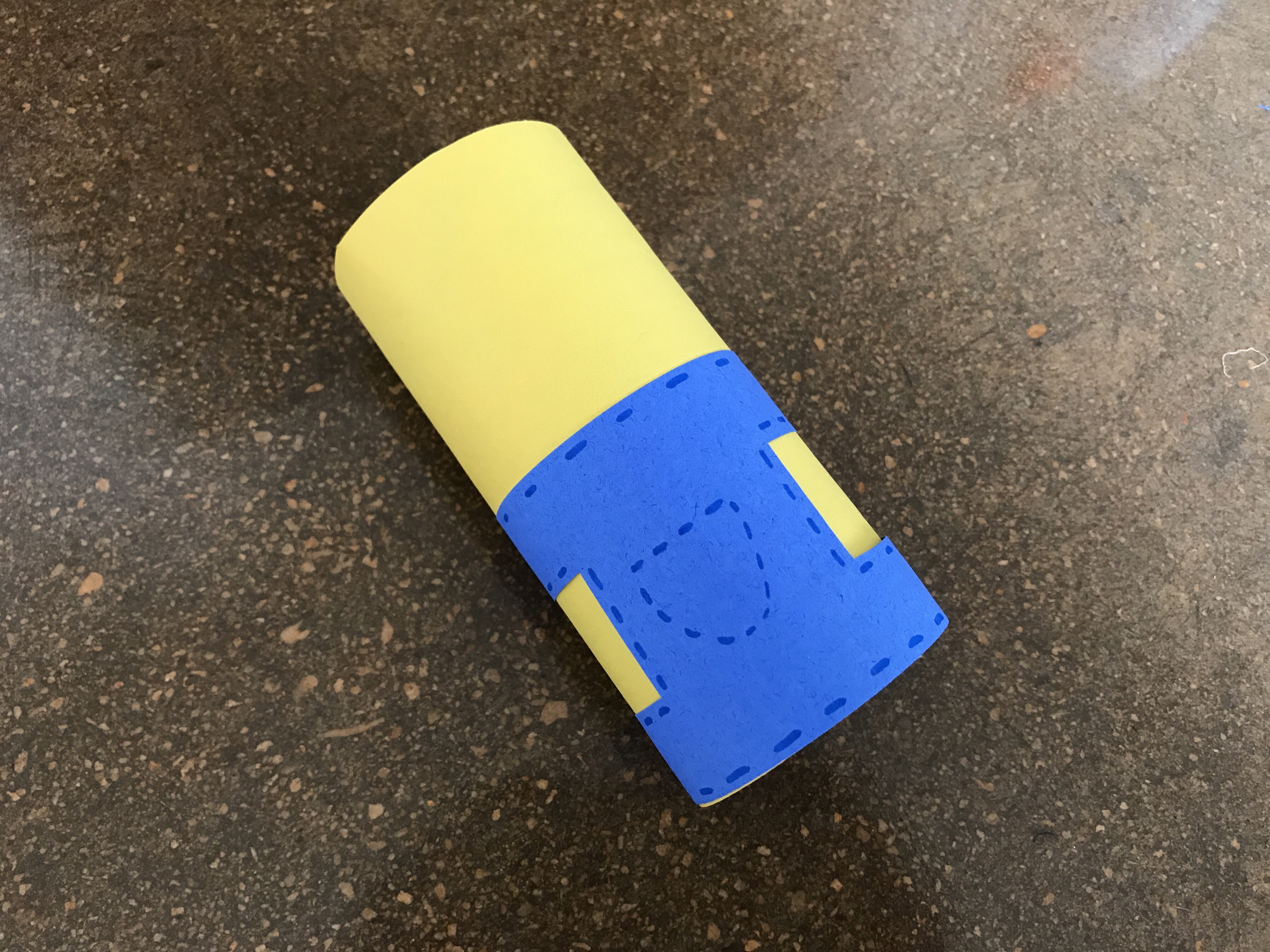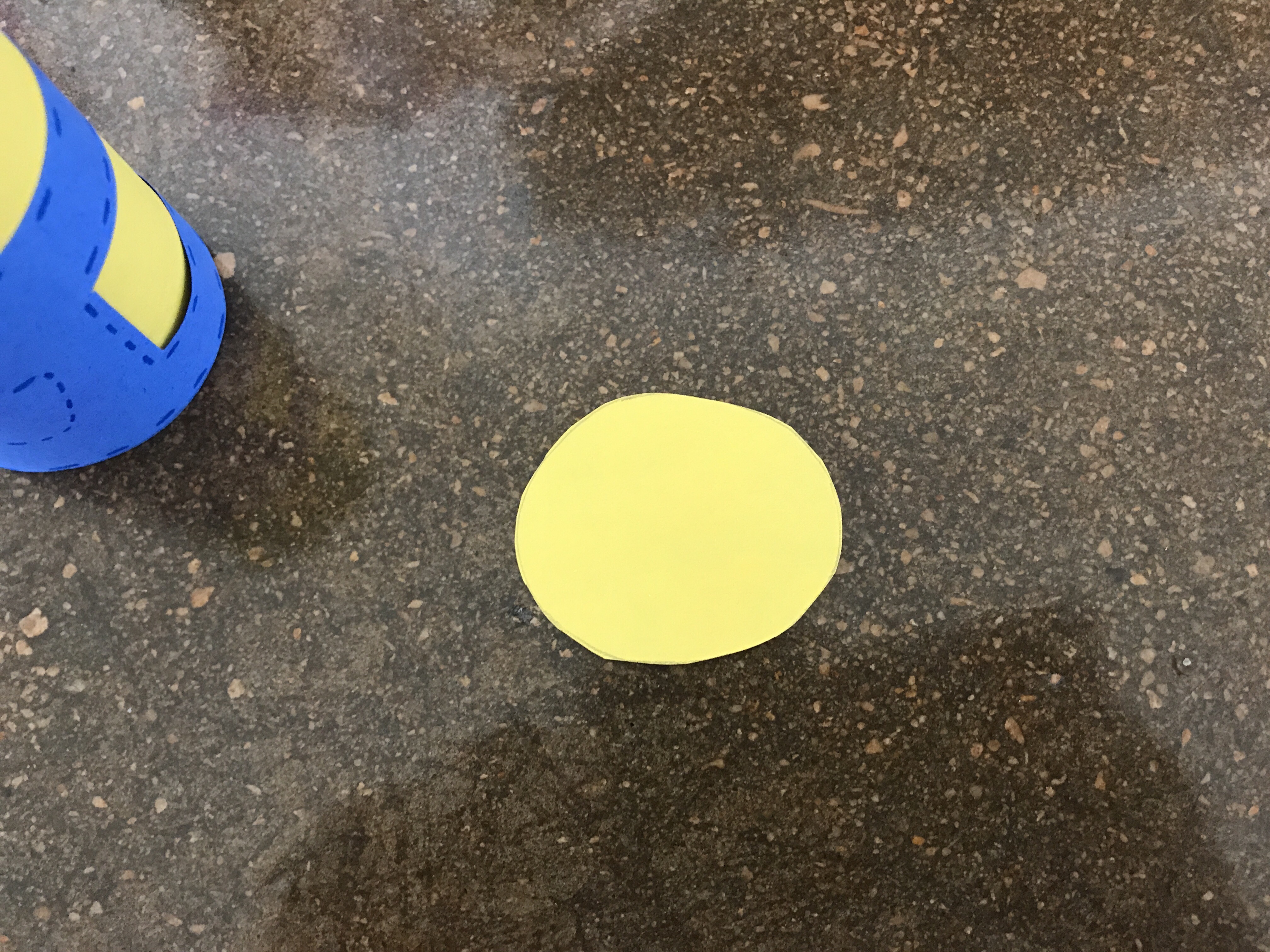 Next, trace the bottom of the roll onto yellow paper and cut out the circle. Glue onto the bottom of the roll.