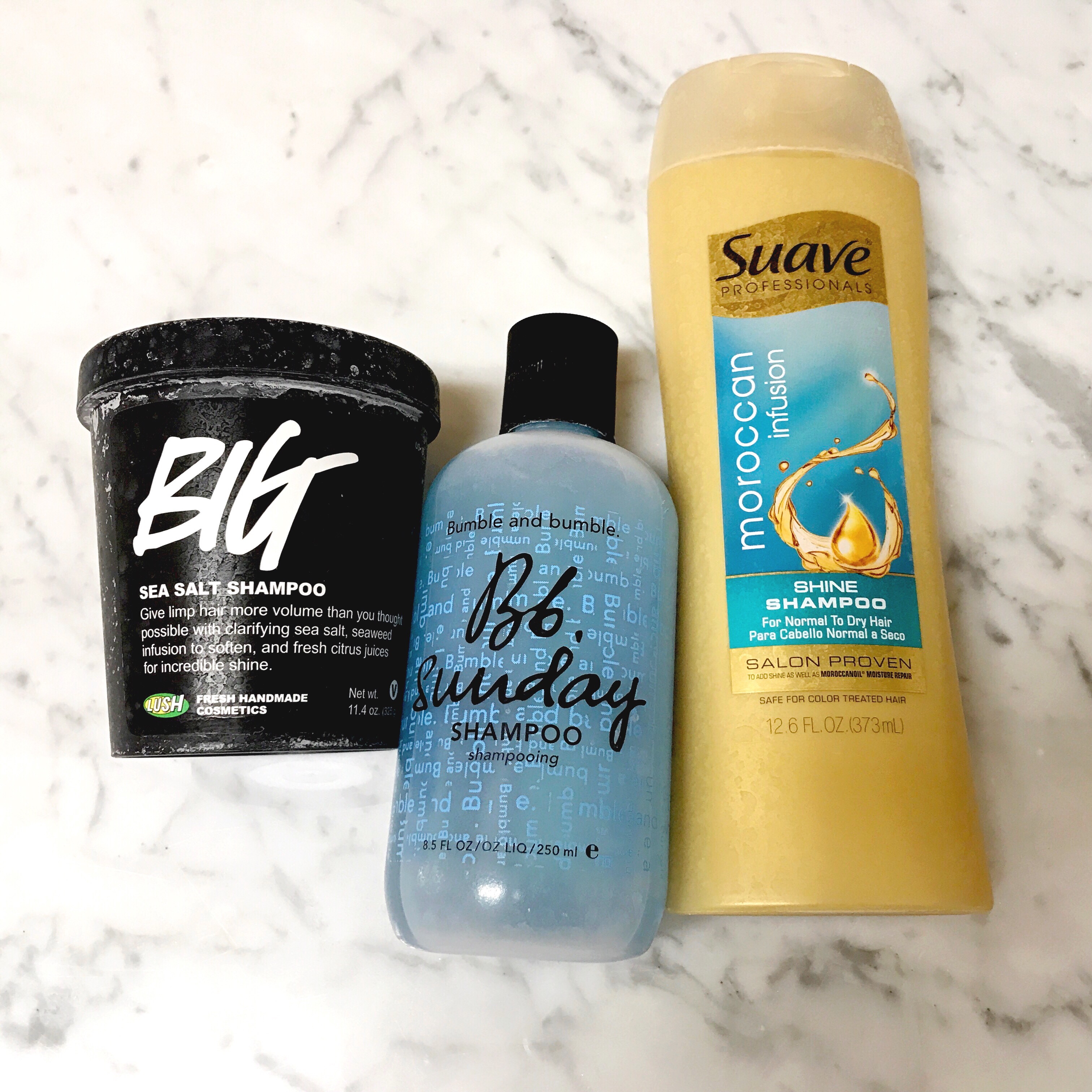 These are my three favorite shampoos. They all make my hair feel squeaky clean and leave it shiny. The Lush Big Shampoo is a volumizing shampoo with sea salt in it that really adds volume and clarifies the hair. Another really nice clarifying one is the Bumble and Bumble Shampoo, which I use once a week to get rid of all of the styling product and dry shampoo buildup. This has a slight mint scent and feels so nice. Lastly, is the Suave Professional Moroccan Infusion Shine Shampoo. This one smells amazing and leaves my hair soo soft. Another is the Garnier Pure Clean Shampoo. It’s important to have a really good shampoo that leaves your hair feeling clean- and you don’t have to spend a lot to find one.