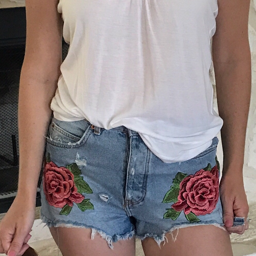 Of course, these shorts I mentioned in my recent ZARA post. I have been wearing these a ton, and they go with anything. They’re just a fancy version of denim shorts, but the high waisted distressed look just works with the roses.