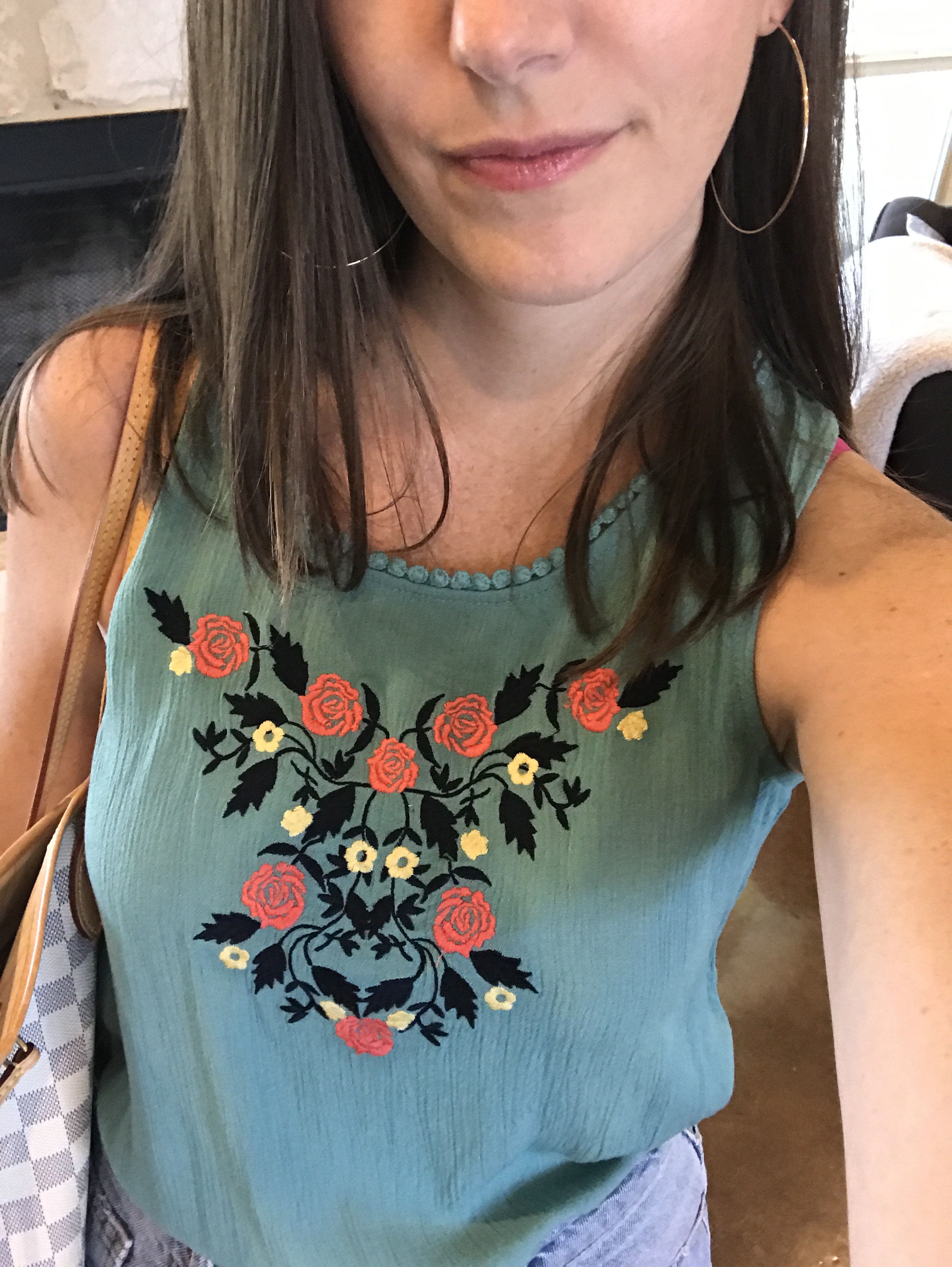 Ive talked about this sleeveless teal colored top with floral embroidery a ton recently on this blog, but I just LOVE it. It comes in other colors, too.