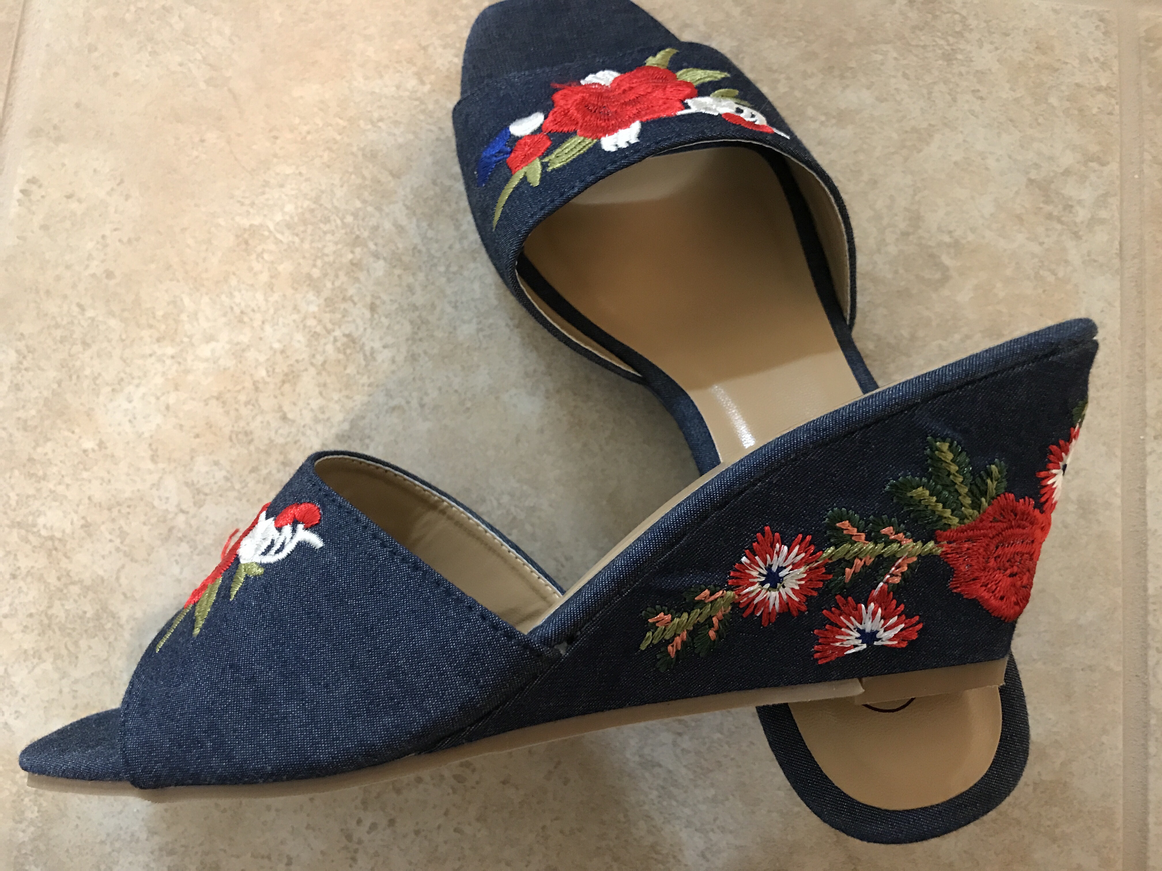 Also, these denim wedges with the red rose embroidery are my favorite. These remind me of the 50’s – something Sandy from Grease would wear! They are so cute and comfy! Similar styles here and here.