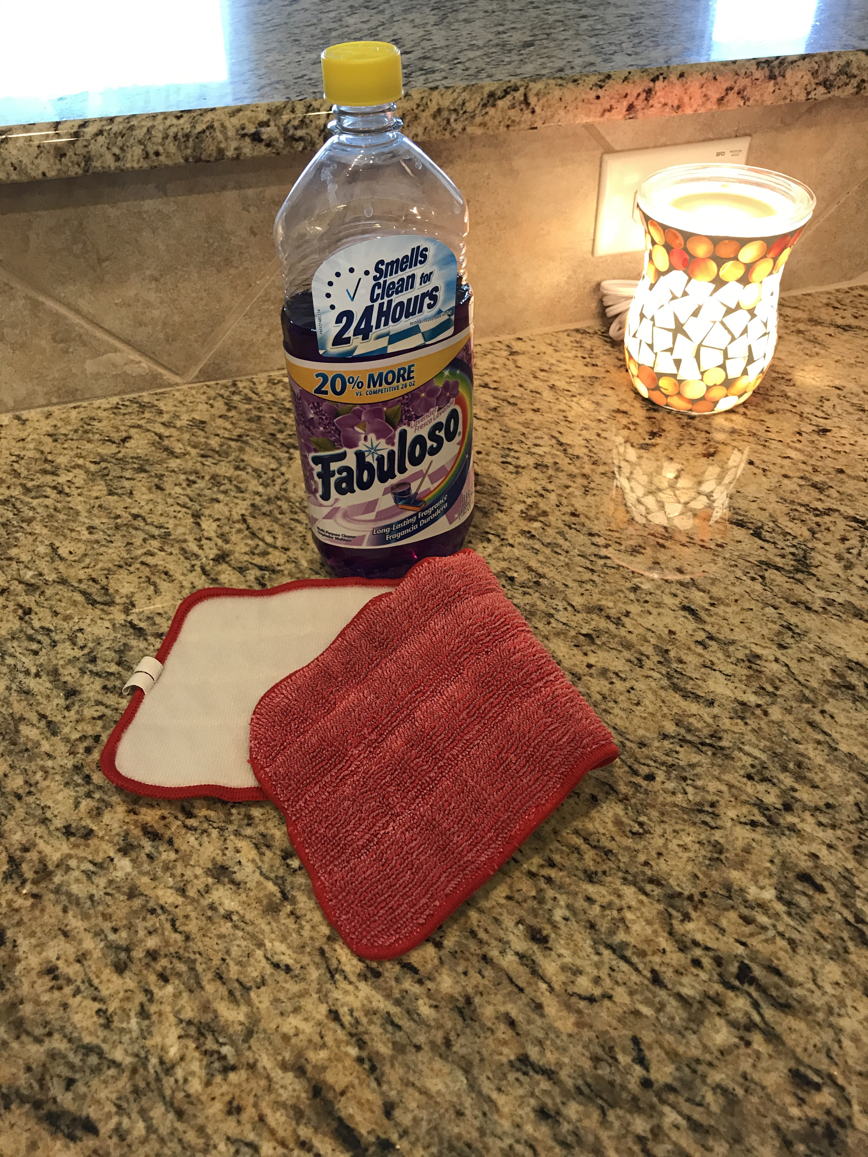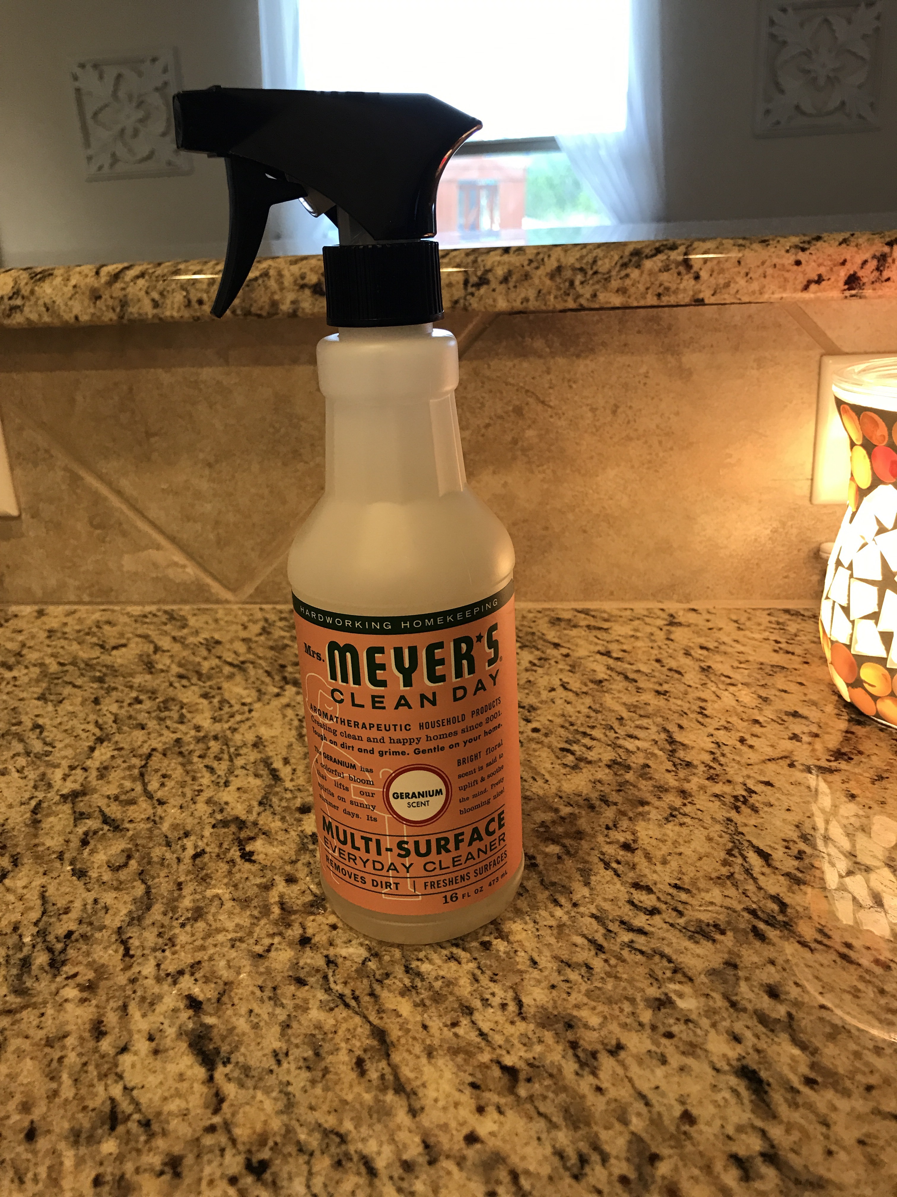 I have been using this Mrs. Meyer’s All Purpose Cleaner in Geranium to clean all of the surfaces. It is safe to use on my granite and my marble in the bathrooms, and it smells so good and leaves all of the counters clean. I also spray this into the sinks and scrub them with a sponge.