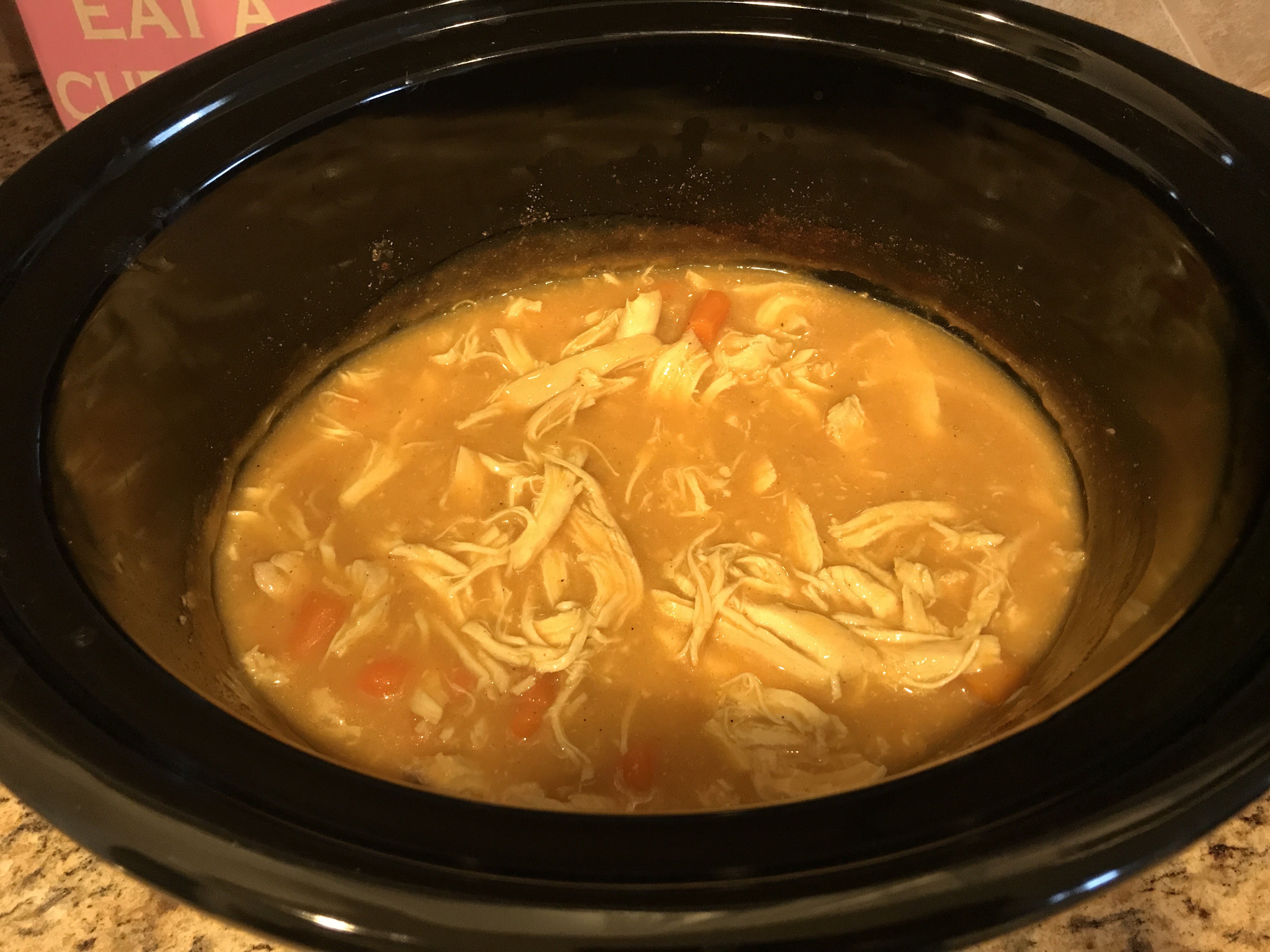 After about 2 more hours, start shredding the chicken. It should be pretty tender at this point.