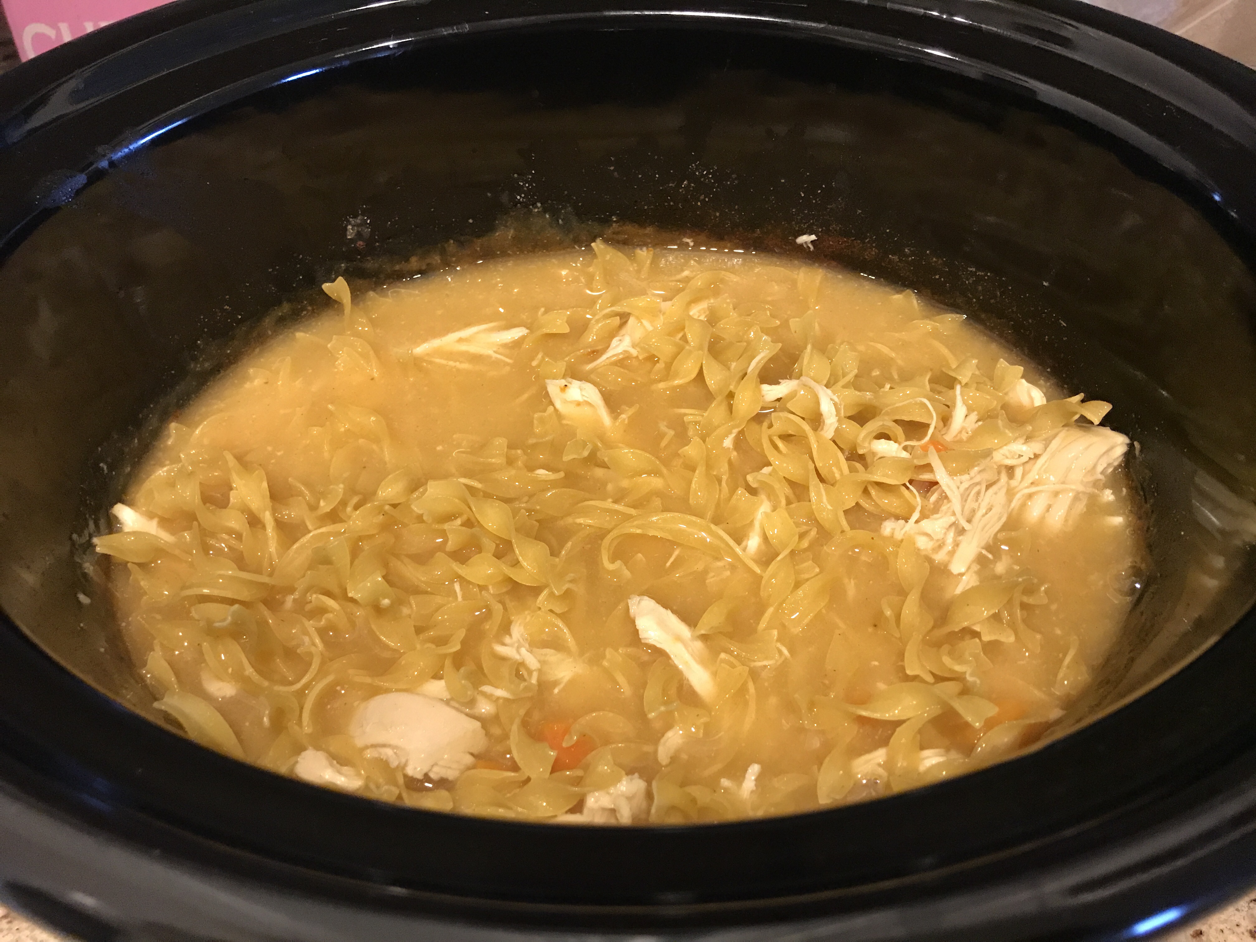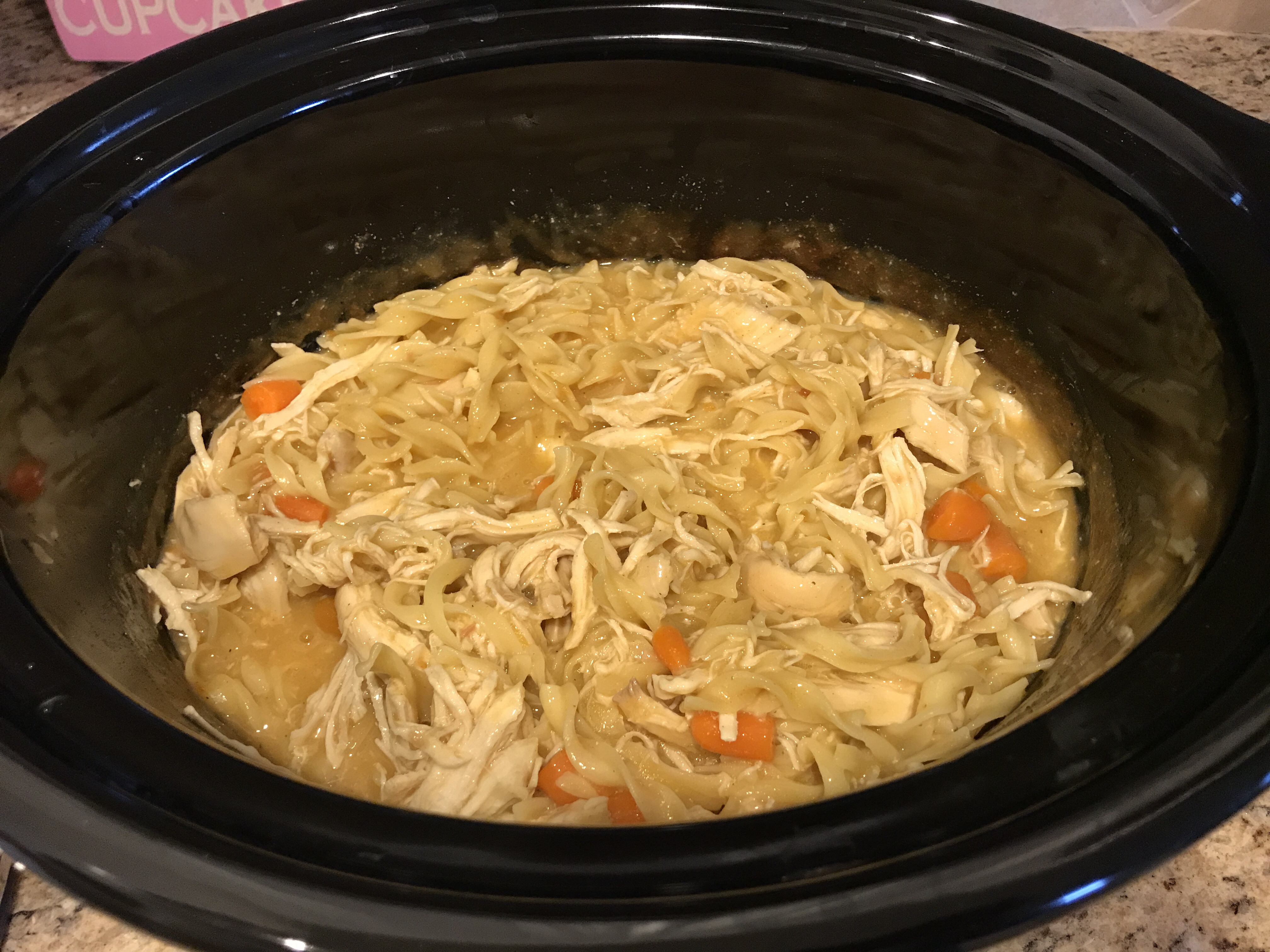 Hello! Today I have a comforting creamy chicken noodle casserole to share with you! Lately I have been using my crockpot a ton- making soups and stews, and I recently made this recipe for my family (which I kind of just came up with one day) and I thought you guys would like it! Who doesn’t love a good crock pot recipe? Set it and forget it! 🙂