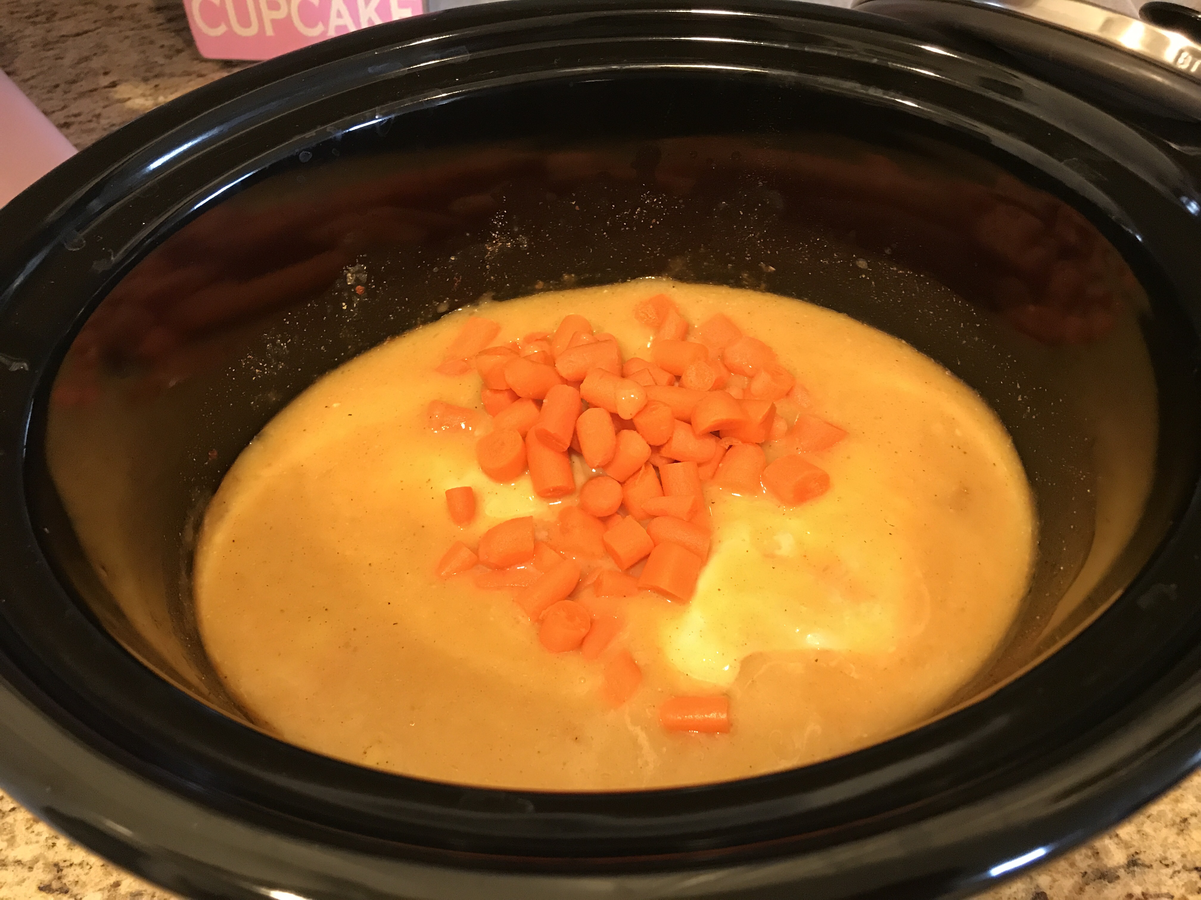 Let that go on low for about 2 hrs. After two hours, add some cut up carrots. I used about a cup.