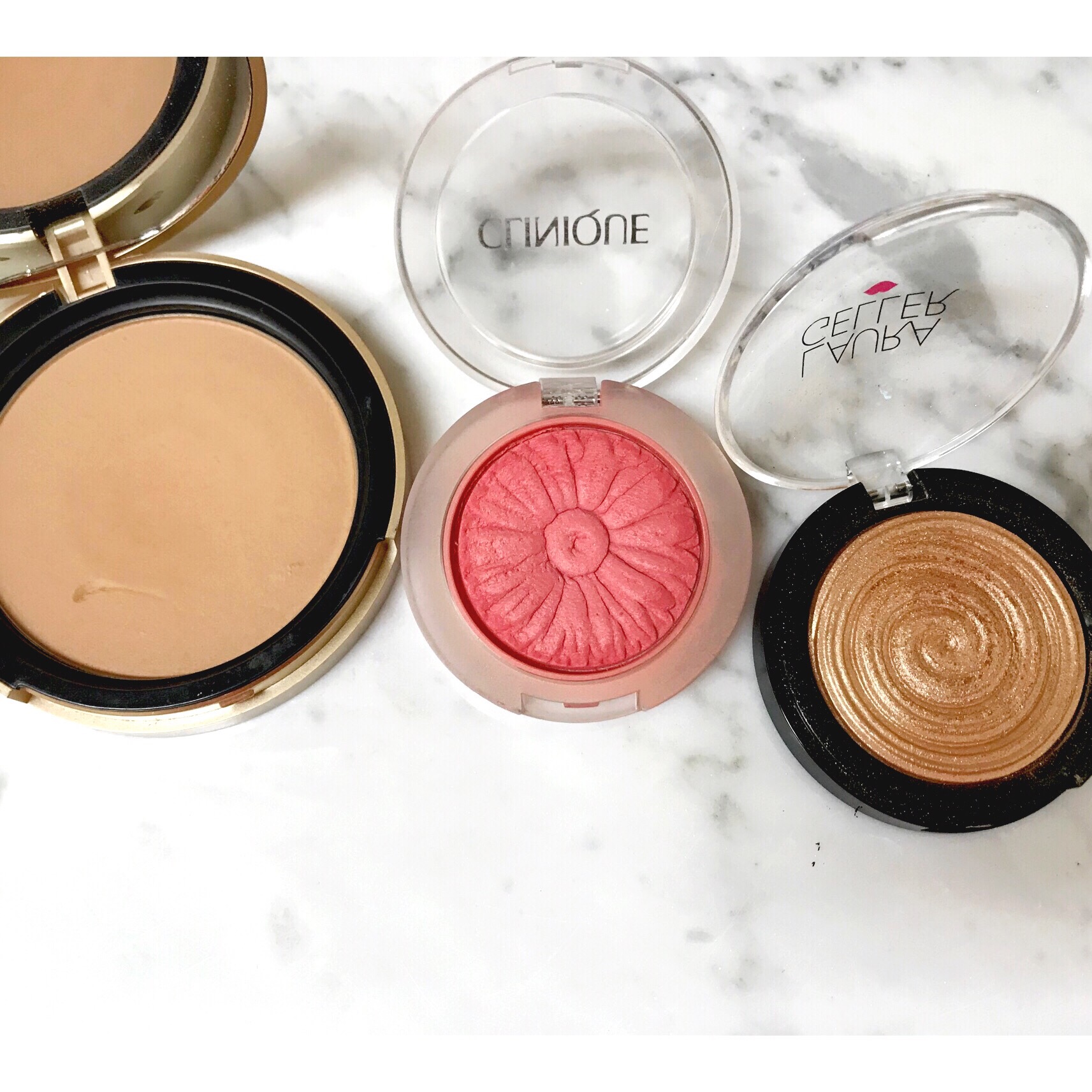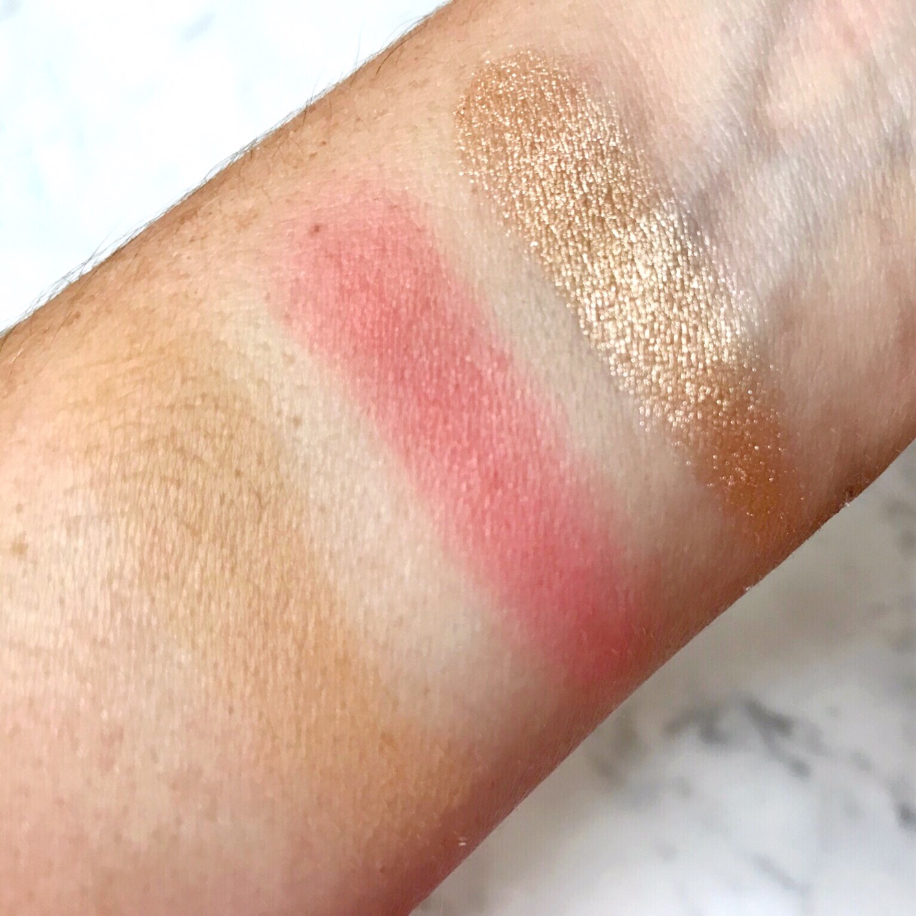 I use bronzer year round, and one of my favorites is this Too Faced Chocolate Soleil in Milk Chocolate. This is a light matte color that is nice for my skintone, and gives me some depth and dimension to my face. For blush, I love this Clinique Cheek POP Blush in Rosy Pop. This is such a good color for fall, it’s a matte rosy pink, similar to the pink flush you get when it’s cold on your cheeks. Love this. I like to use a golden colored highlight for fall along with this blush color. This is Laura Geller Gilded Honey, and it’s a beautiful gold shimmer that gives a pretty sheen to the skin.