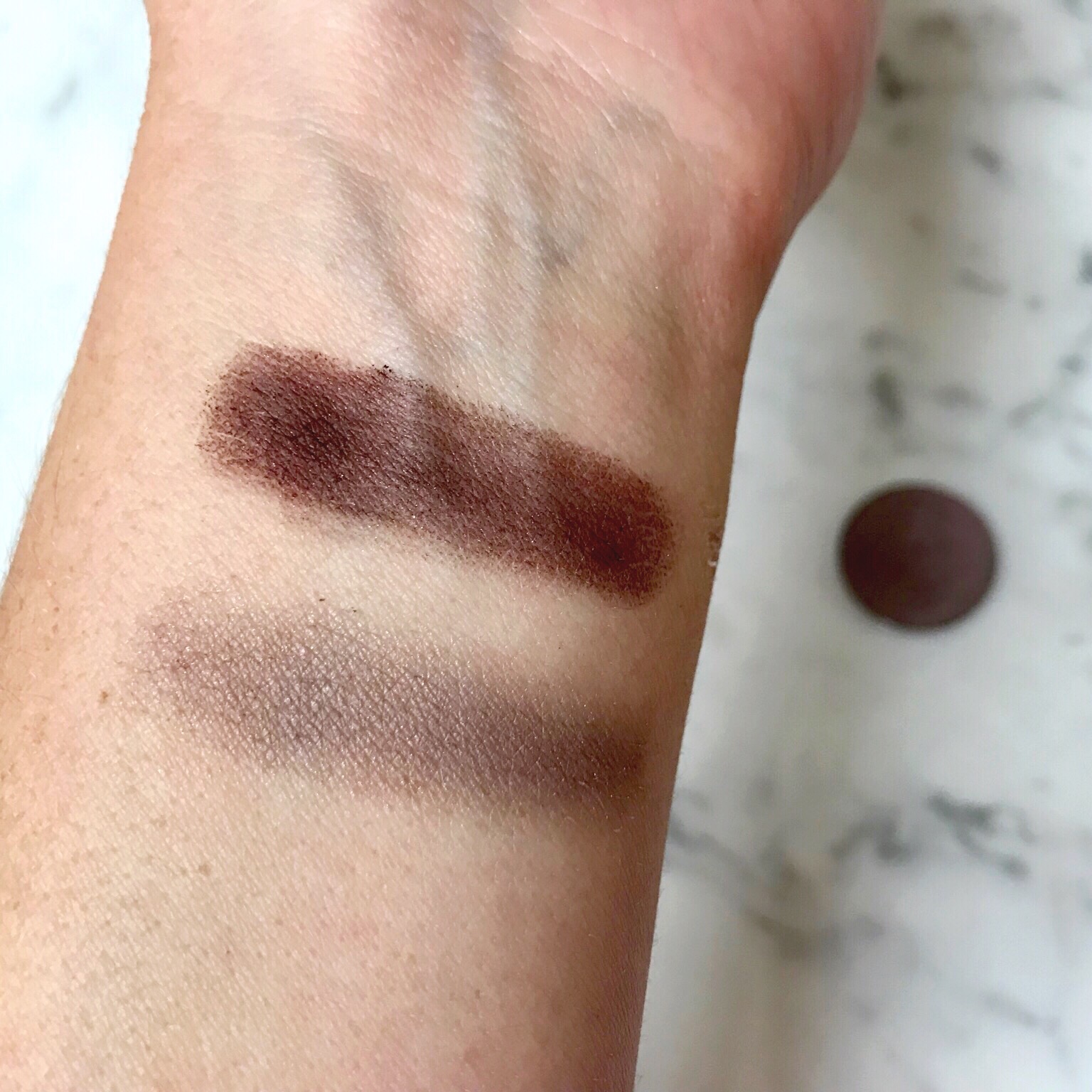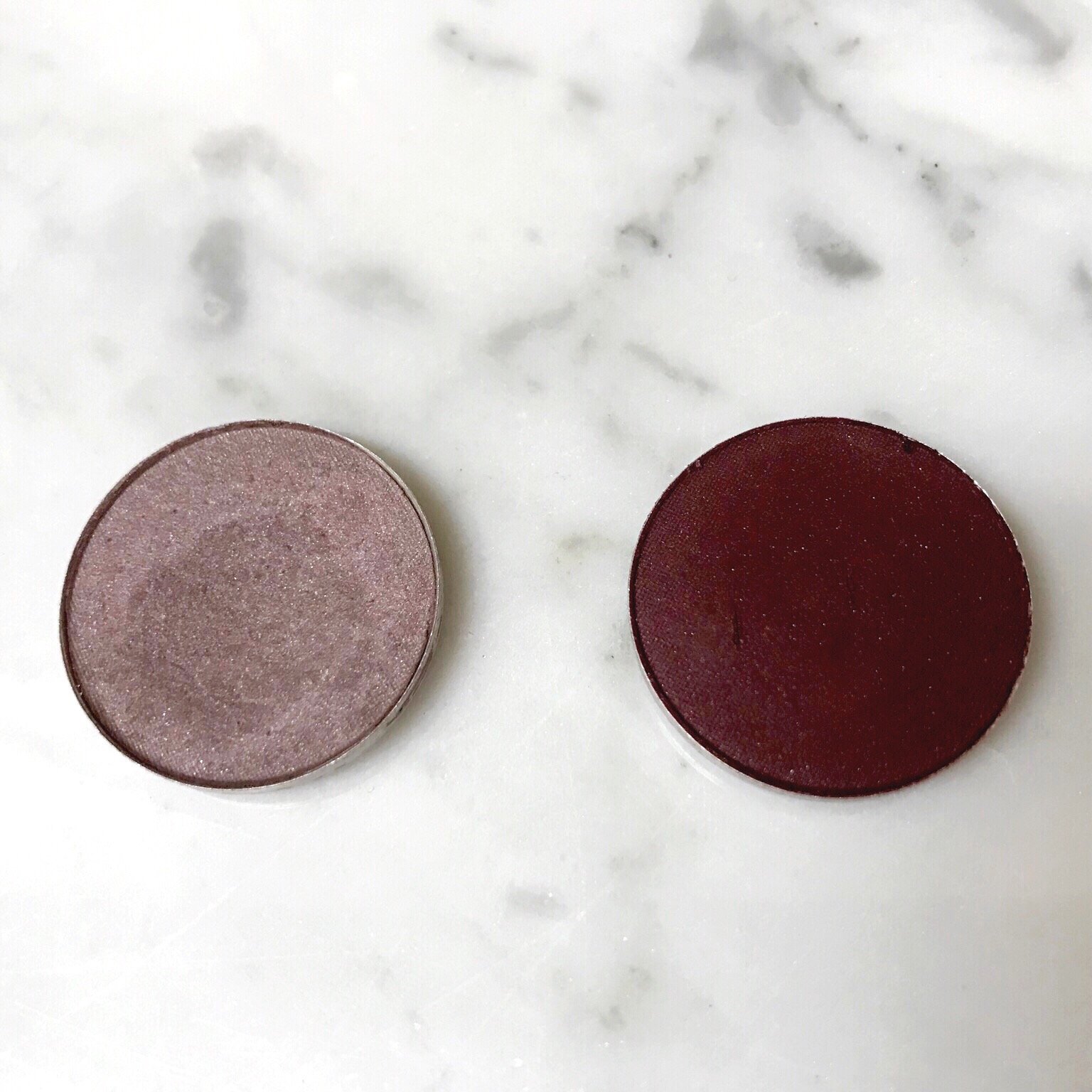 I use MAC Shale all over my eyes, and then MAC Sketch in the crease. Shale is my favorite MAC shadow, and it’s this medium purple taupe color that is really cool toned and pretty on the lids. Sketch is kind of a purple burgundy color that comes off matte. The two colors together look really pretty. The effect is not as colorful as you may think, it’s hard to tell it’s even purple once it’s applied.