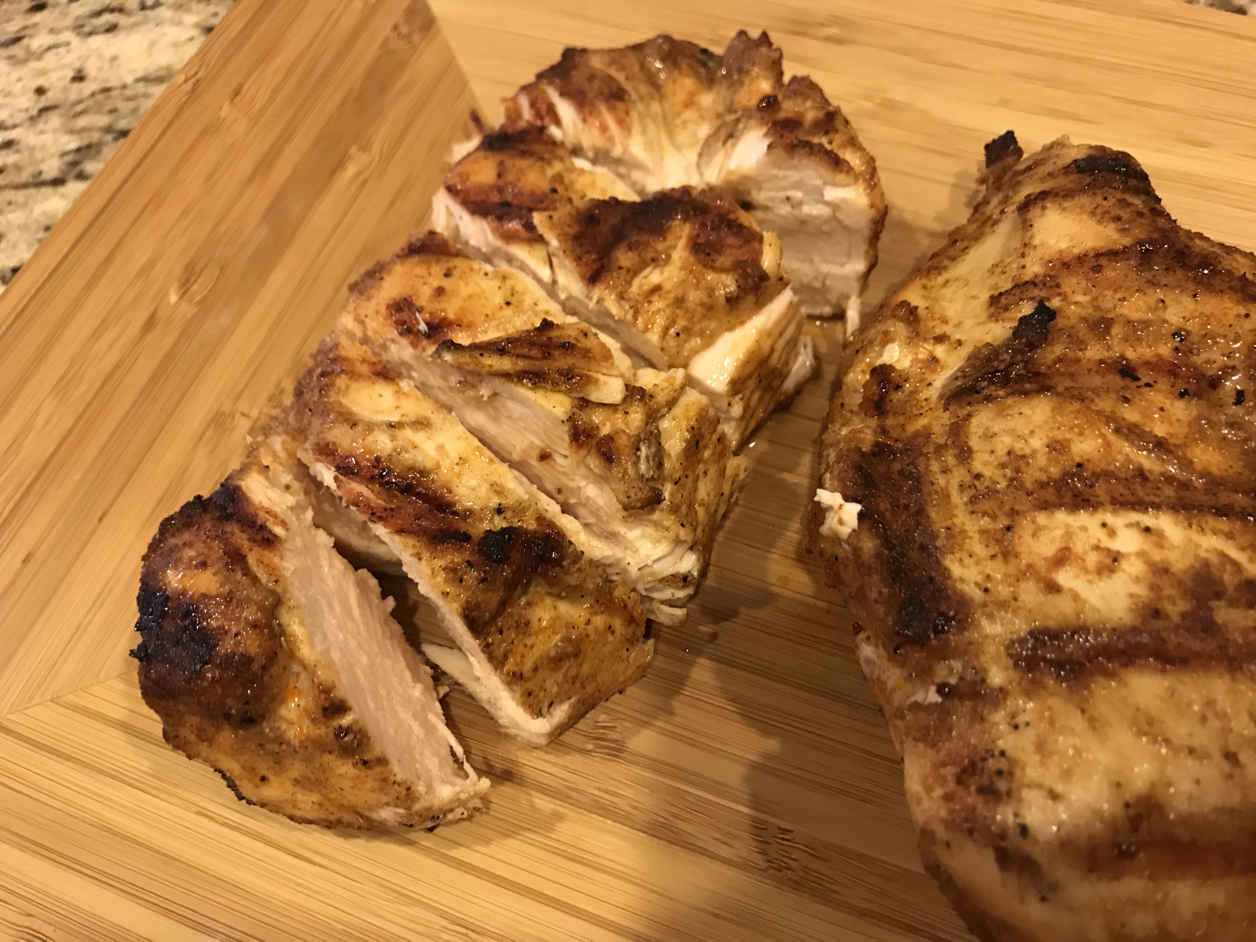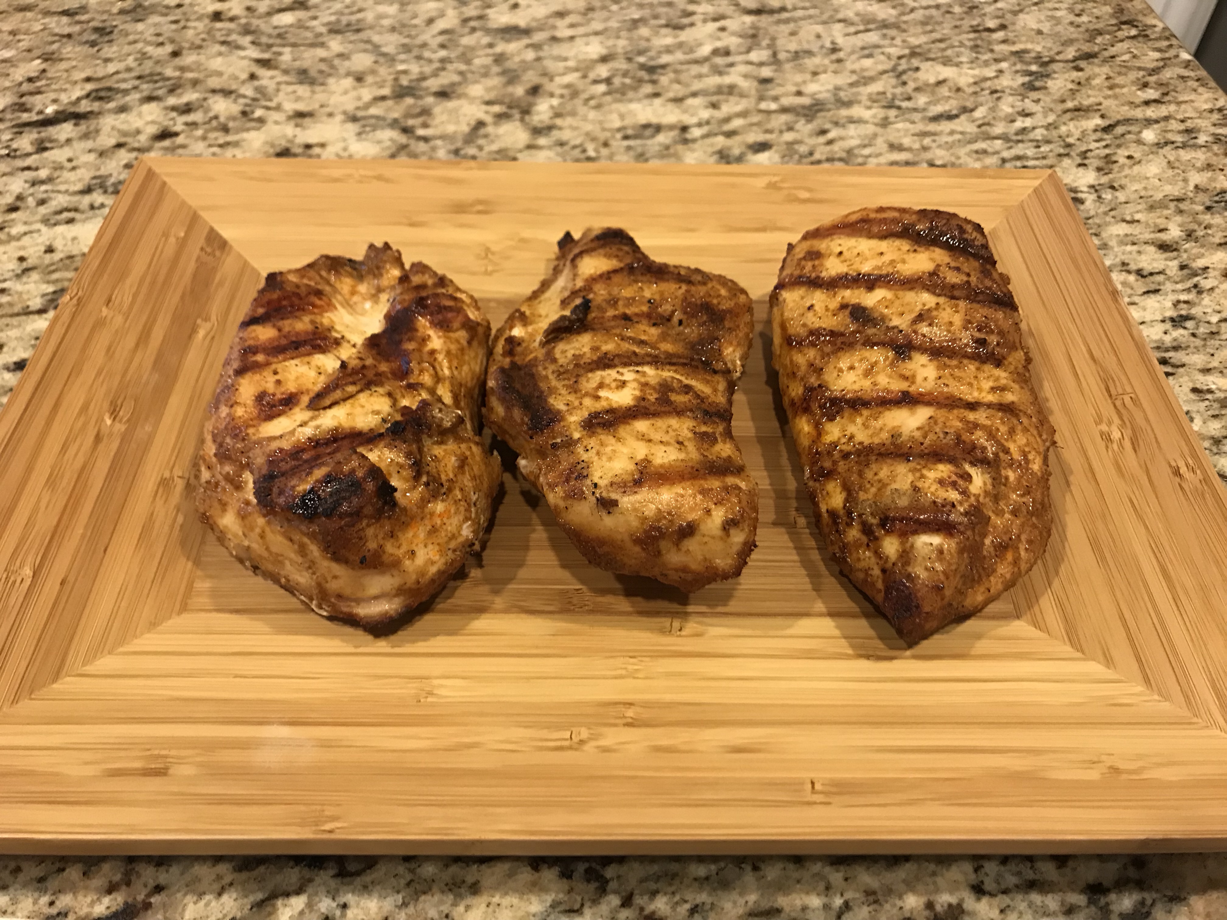 Grilled chicken can go with pretty much anything – a baked potato, macaroni and cheese, etc., but we really like it on a salad and even leftover. We always make our grilled chicken the same way- JJ’s special way! I guarantee that you will LOVE this chicken.