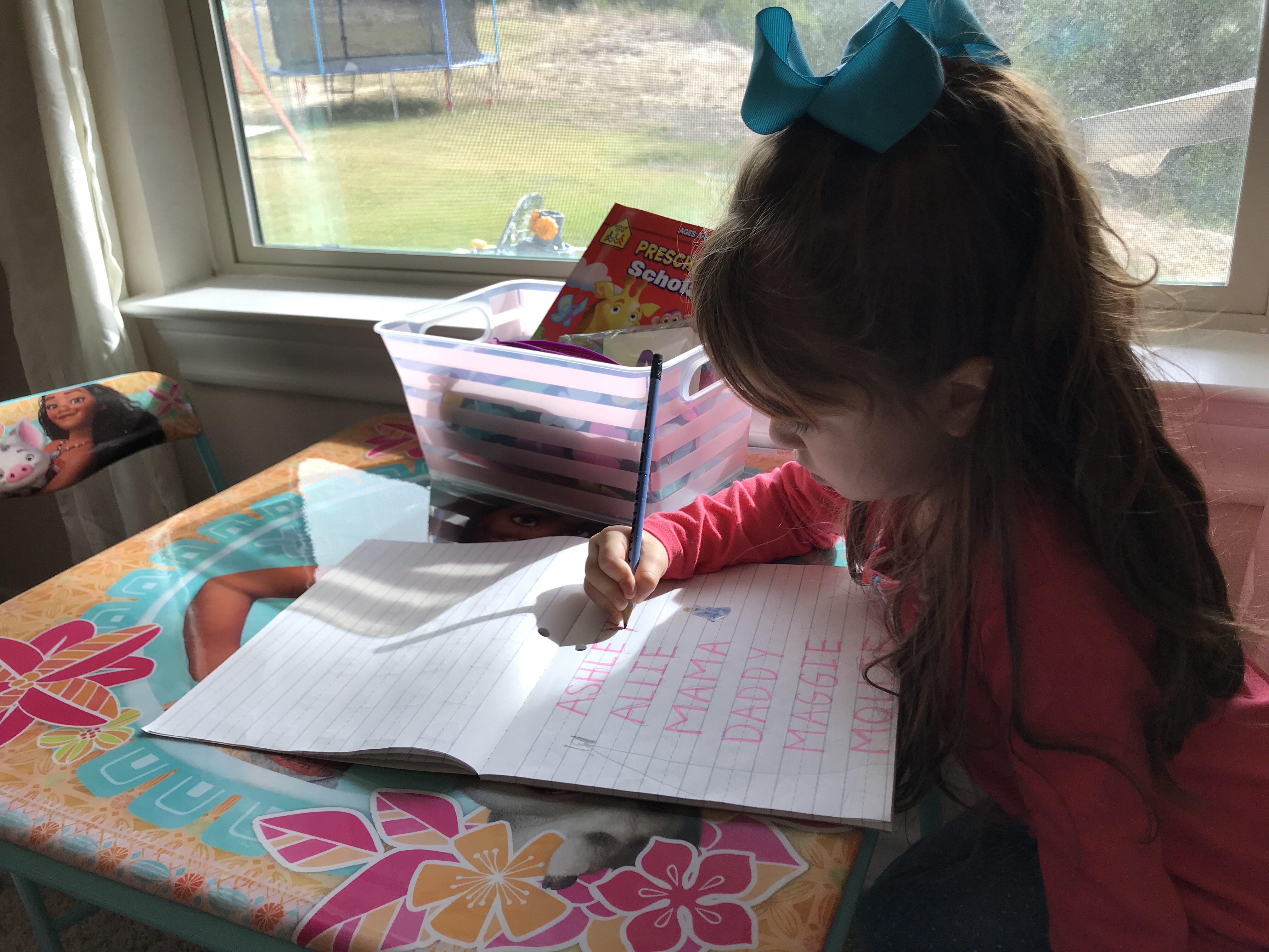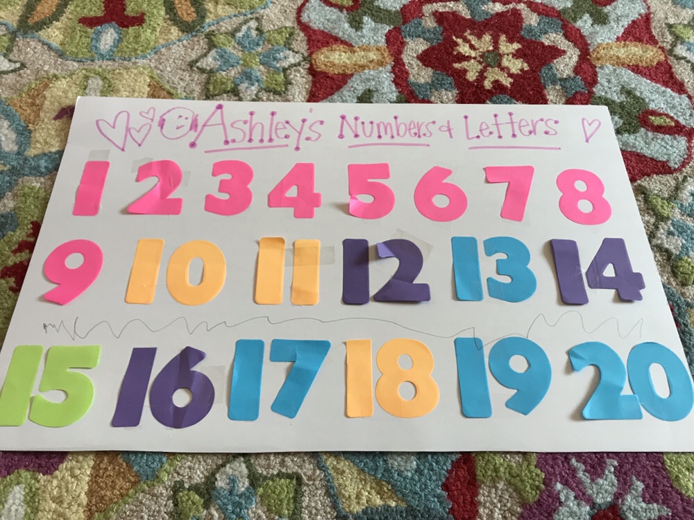We try to do “learning time” every day, for about an hour. I have a bunch of tools that I use, and it’s really fun for Ashley. She feels like a big girl and that we are pretending to play school.