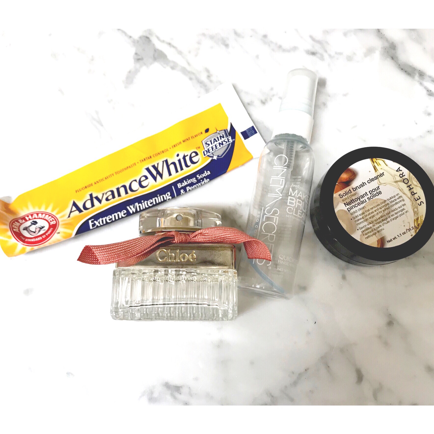 I decided to throw in my toothpaste (why not?) for this post, and it’s the Arm and Hammer Extreme Whitening with Baking Soda and Peroxide. I love this stuff because it’s not sickeningly minty and sweet like regular toothpaste, and I like how it foams up a lot and really whitens my teeth. Already repurchased!