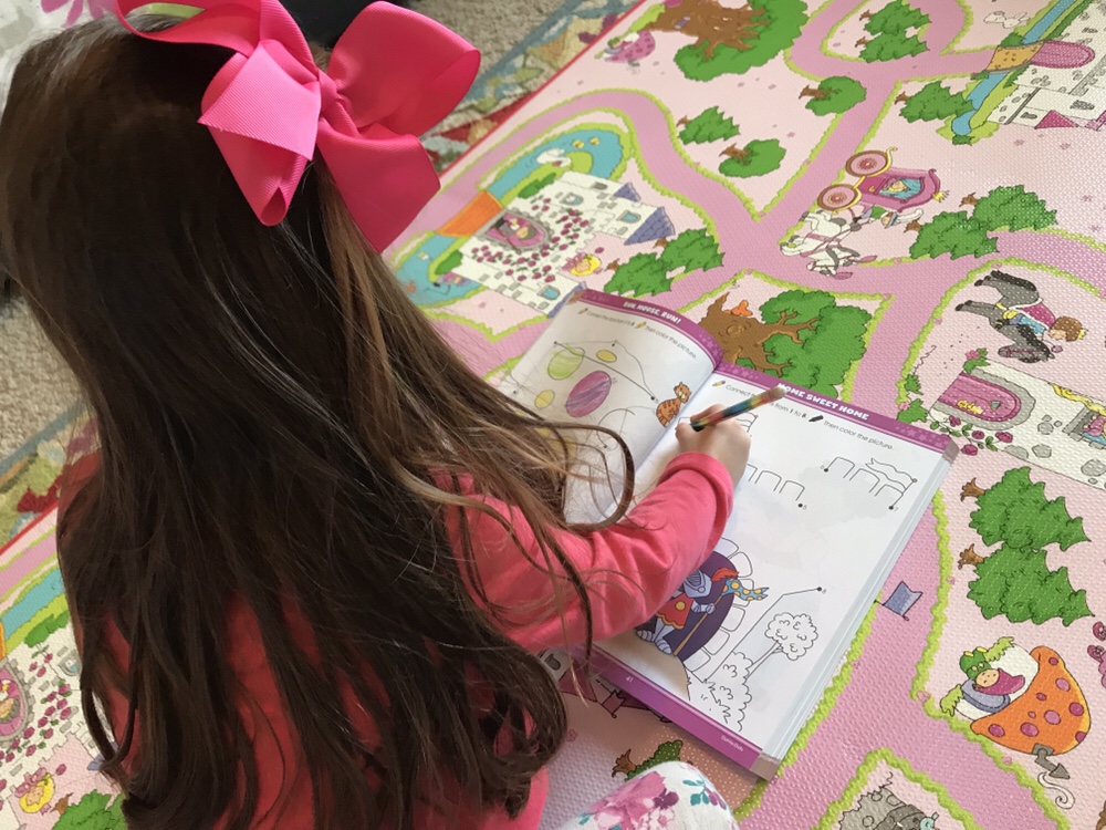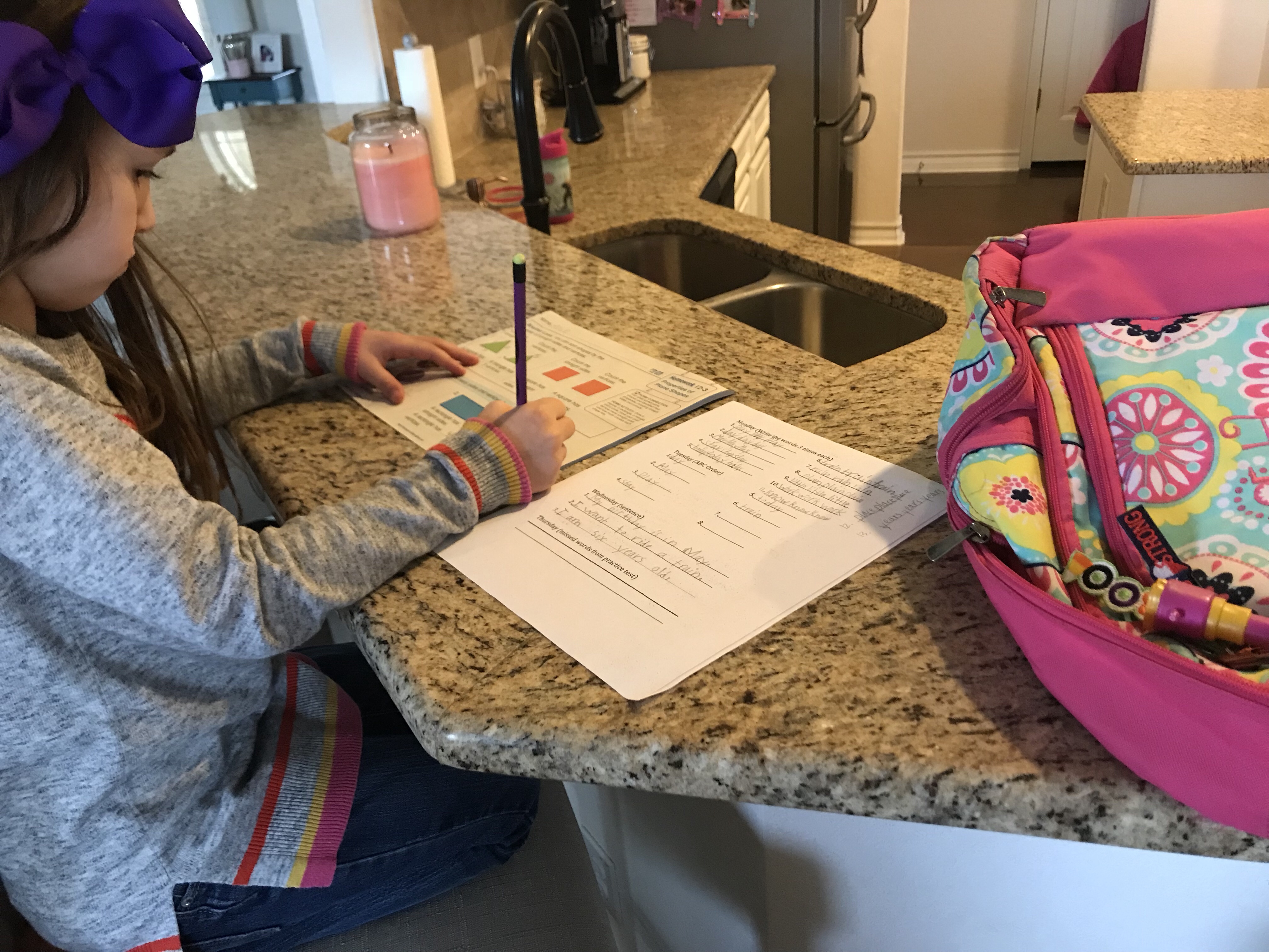 Arrive back home with Allie and help her with her homework. She usually has a worksheet and reading. Tonight she had math and I had to give her a practice spelling test (which she got 100, like always!)