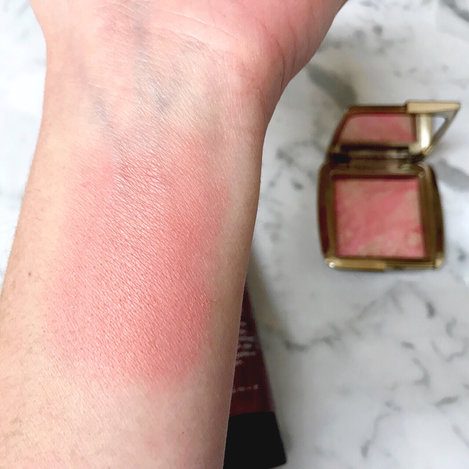 I bought this blush awhile ago, but I just recently pulled it out and started using it again. This is the Hourglass Ambient Lighting Blush in Luminous Flush. This blush is beautiful. It is a rosy pink color mixed with a champagne colored highlight. It is so pretty on the cheeks and gives a glow without being shimmery.