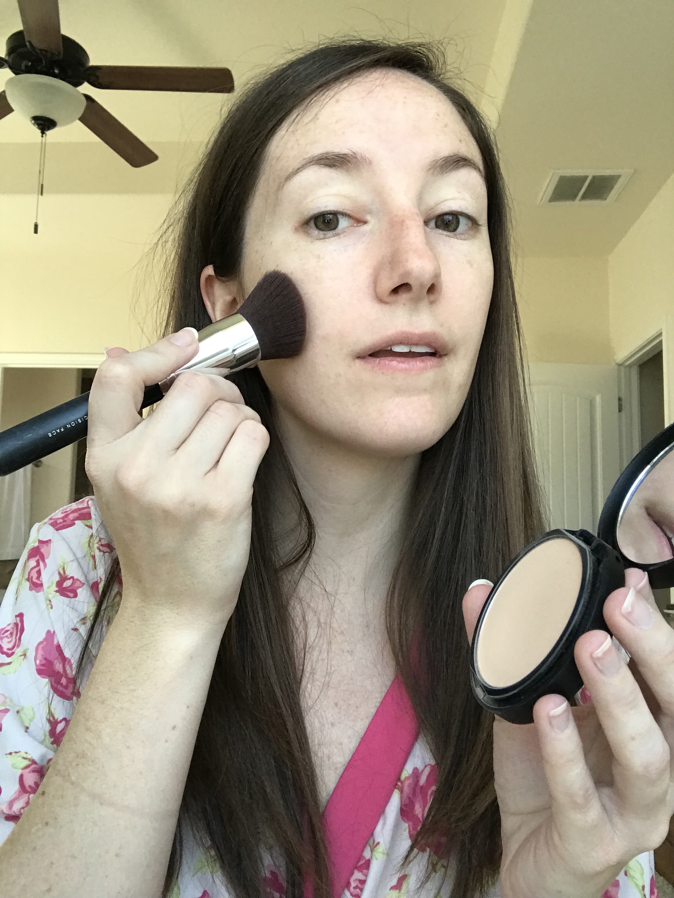 I go right in with my Bare Minerals BarePRO Powder Foundation in 04 Aspen. This is so quick and easy to buff in and even out my skin tone.