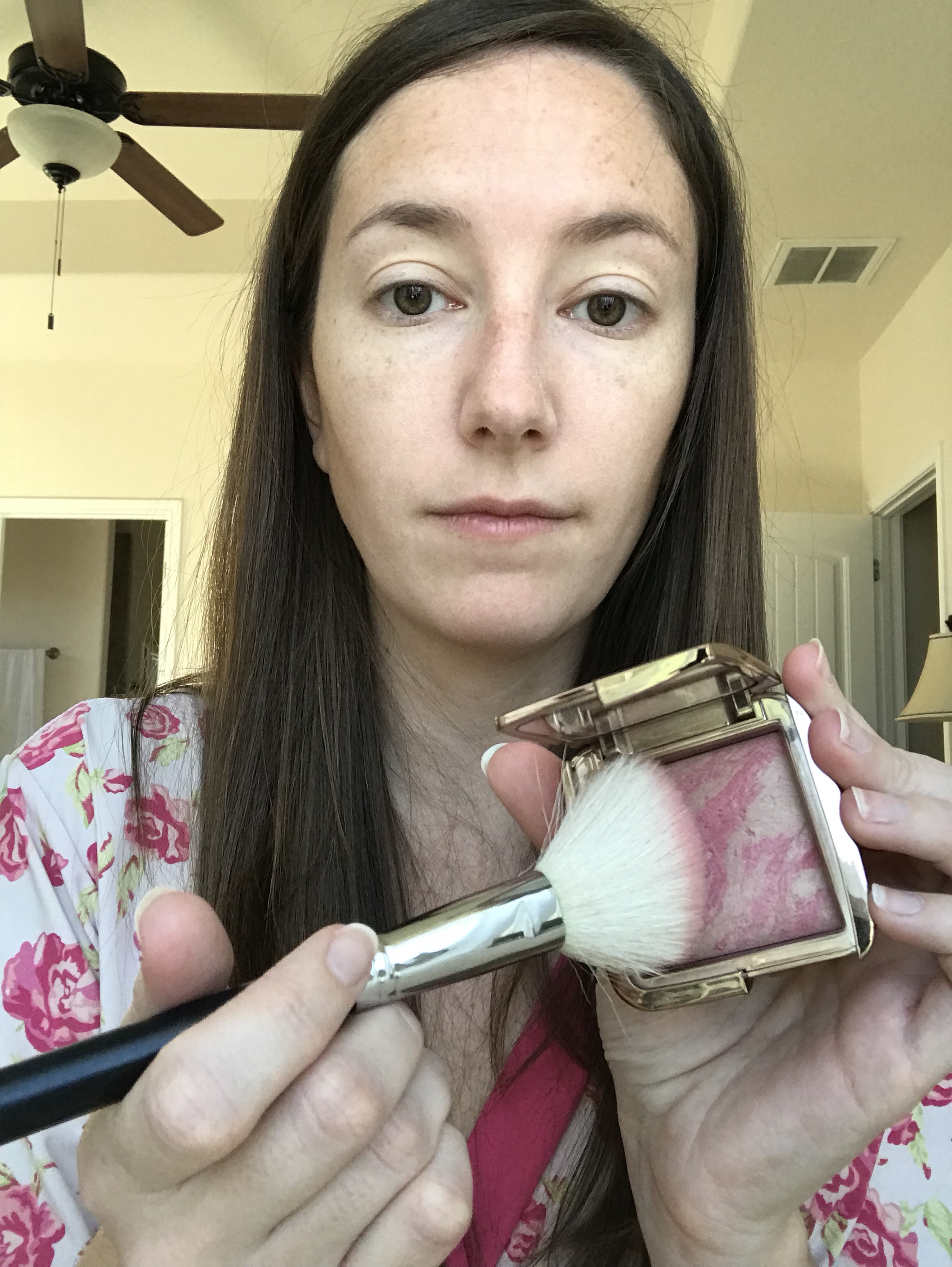 Since I have to leave the house at 7:05 a.m. to get Allie to school, I have to hurry with the whole makeup and hair situation. I don’t wash my hair everyday, but I do wear makeup every day. I may not do full makeup everyday, but I gotta do something! Here is my 5 minute makeup routine that I do on most days.
