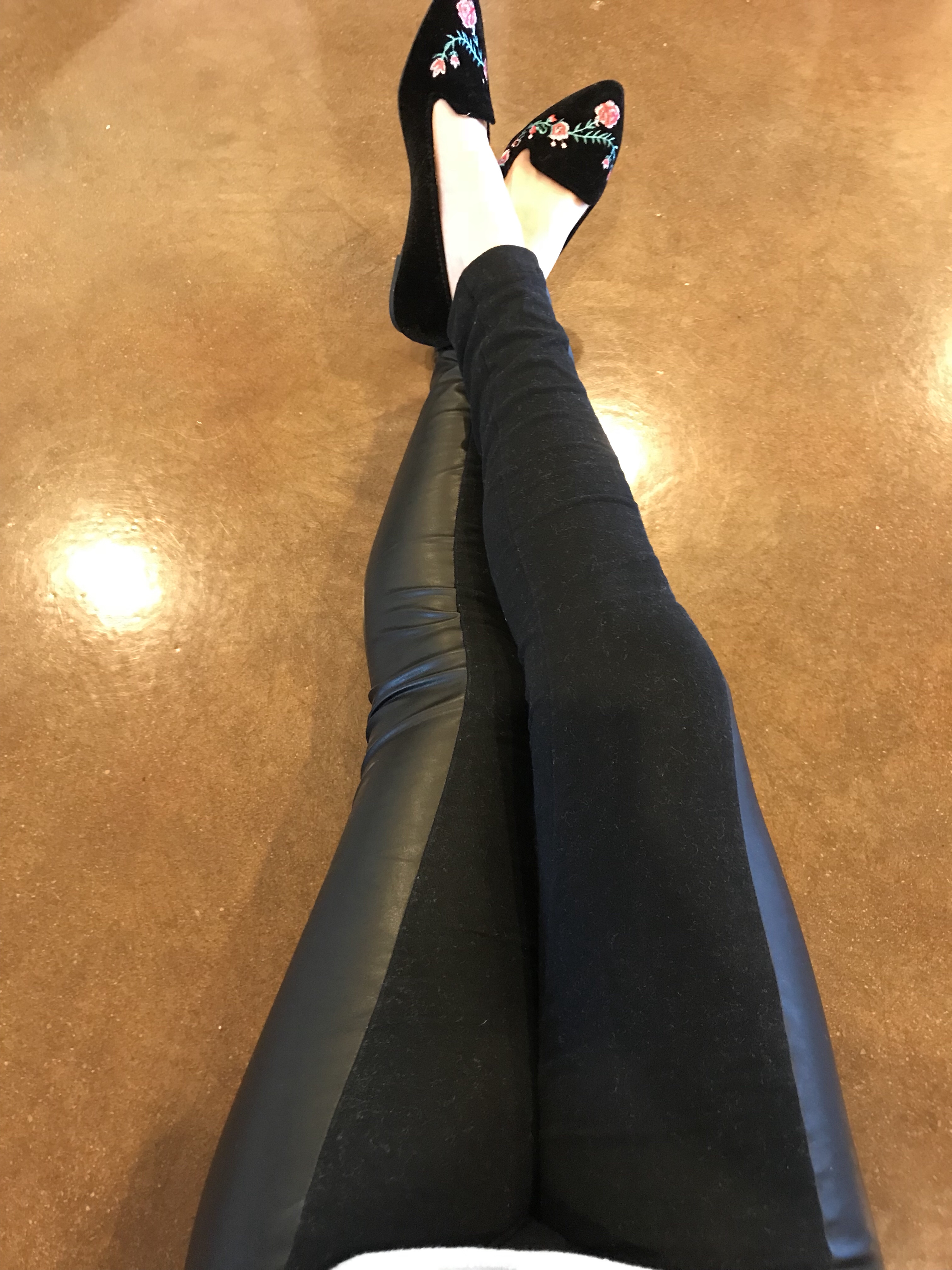 These are so hot right now for the winter, and I really like the look of them. They are still comfy leggings, but a little bit more dressy. I especially love these leggings with a faux leather panel on each side. So cute. Get the look here.