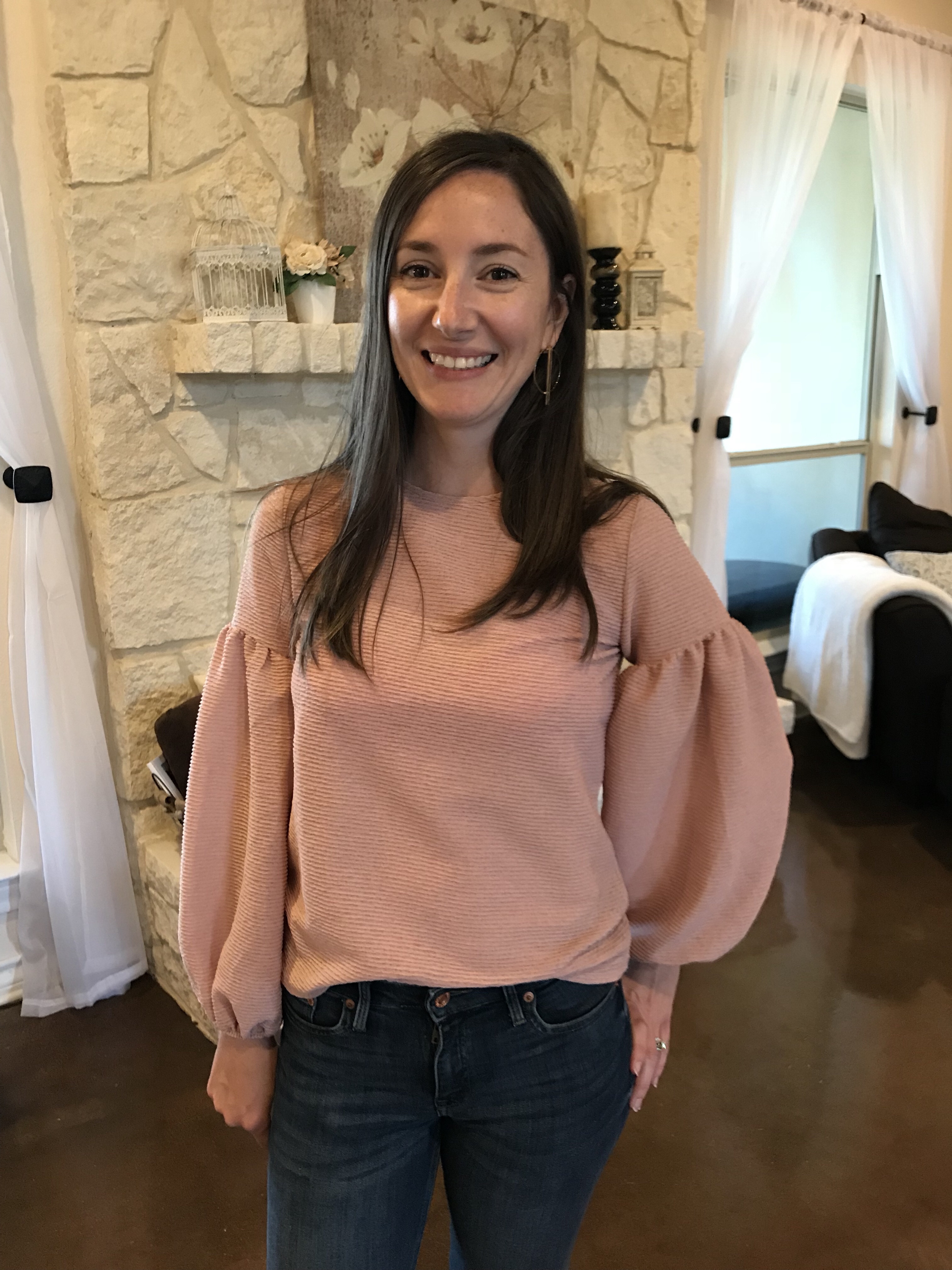 This next one is more flowy and long sleeve. I love the blush (my color of life) and how dressy this is.