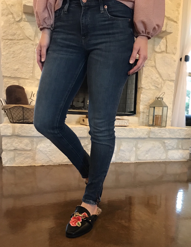 I love high waisted jeans. They are so flattering, and remind me of the 80’s, which I love. These particular ones are a skinny fit and have a zip ankle. Get them here.
