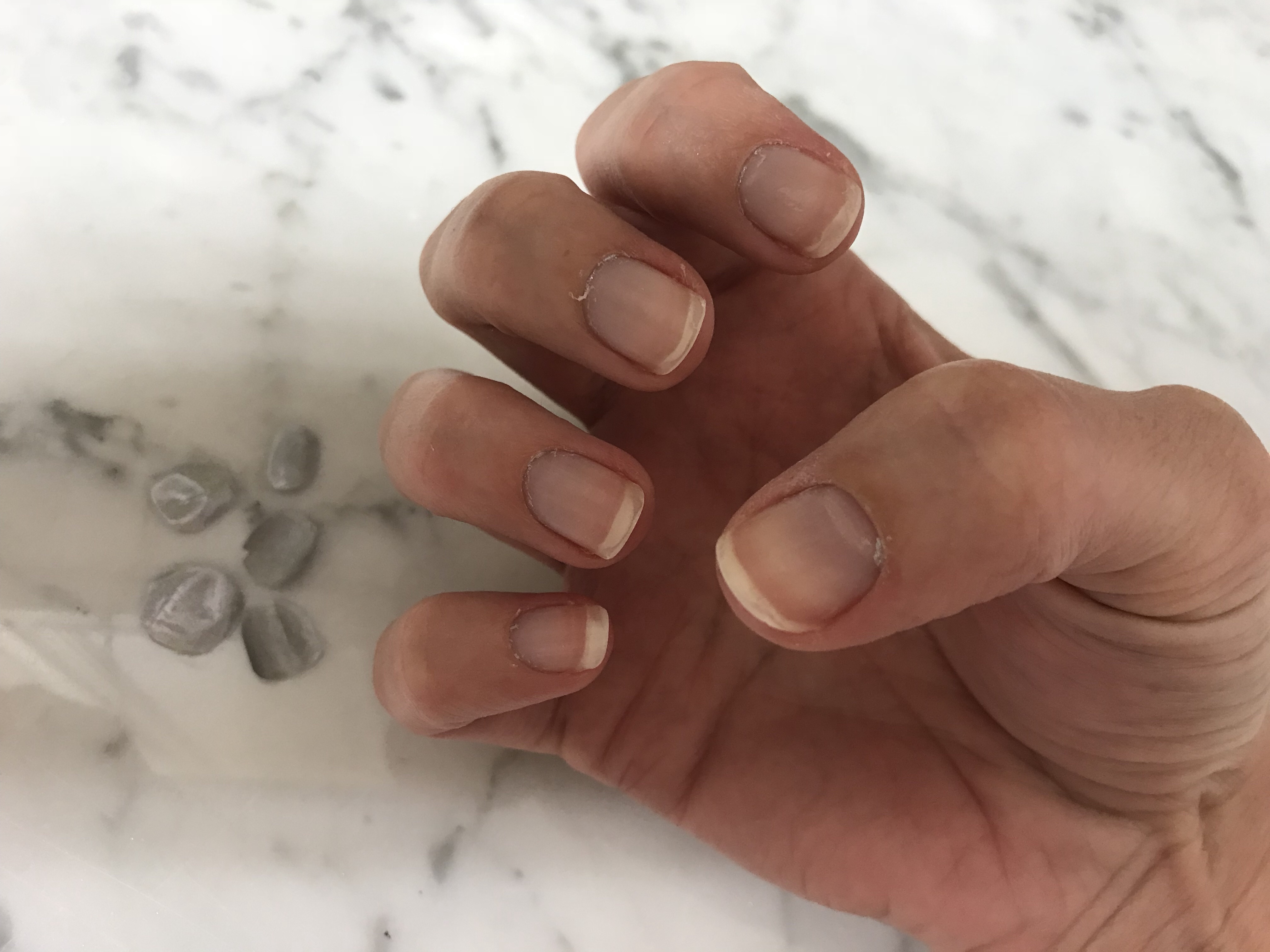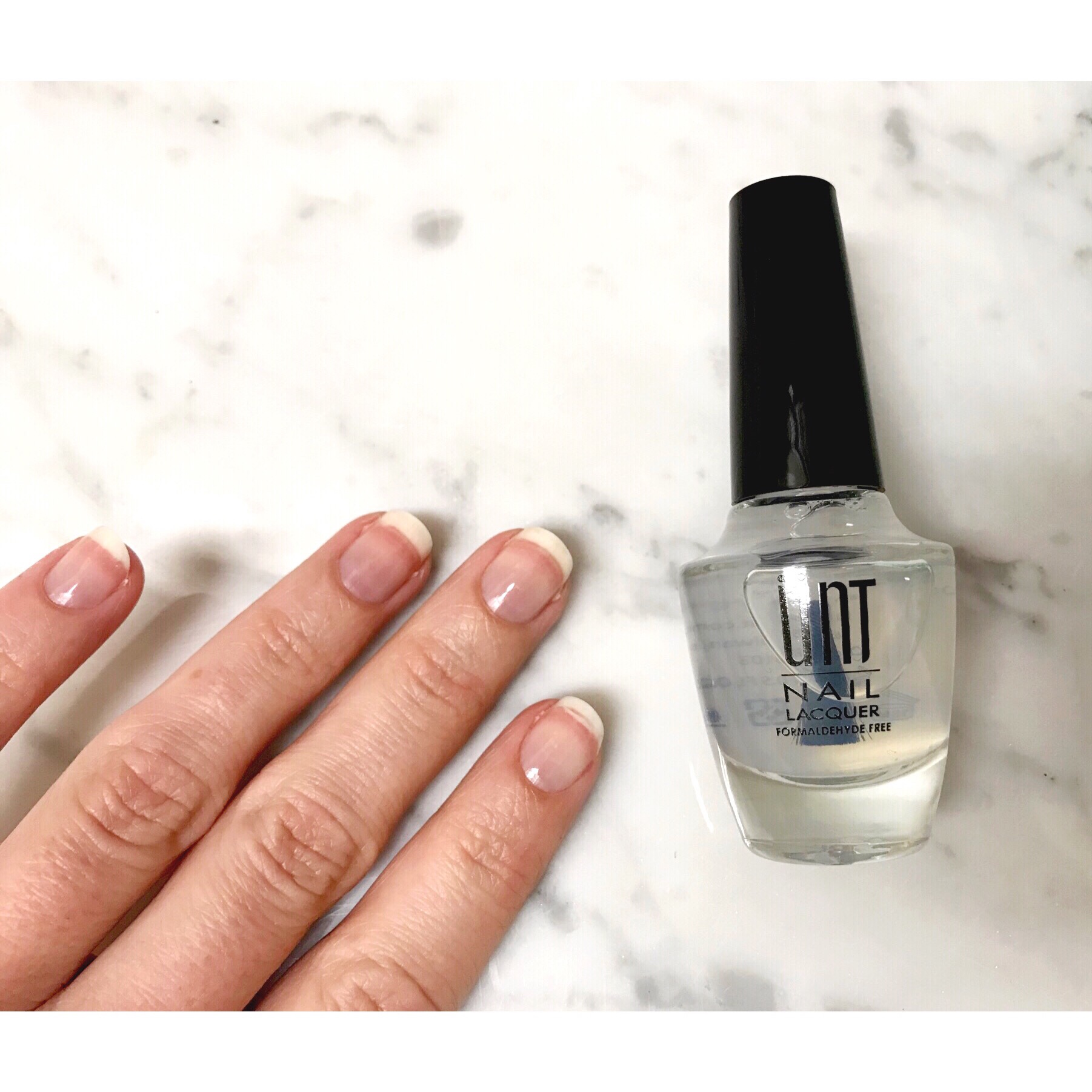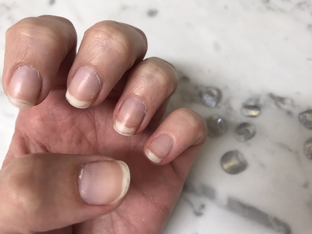 I started off with clean nails and made sure to swipe each nail with acetone to get rid of any oils on my nails. I applied one coat of the base coat to each nail and let it dry. It smelled a little bit different than regular nail polish, kind of like a glue smell. It also felt cold going on the nails. It was easy to apply.
