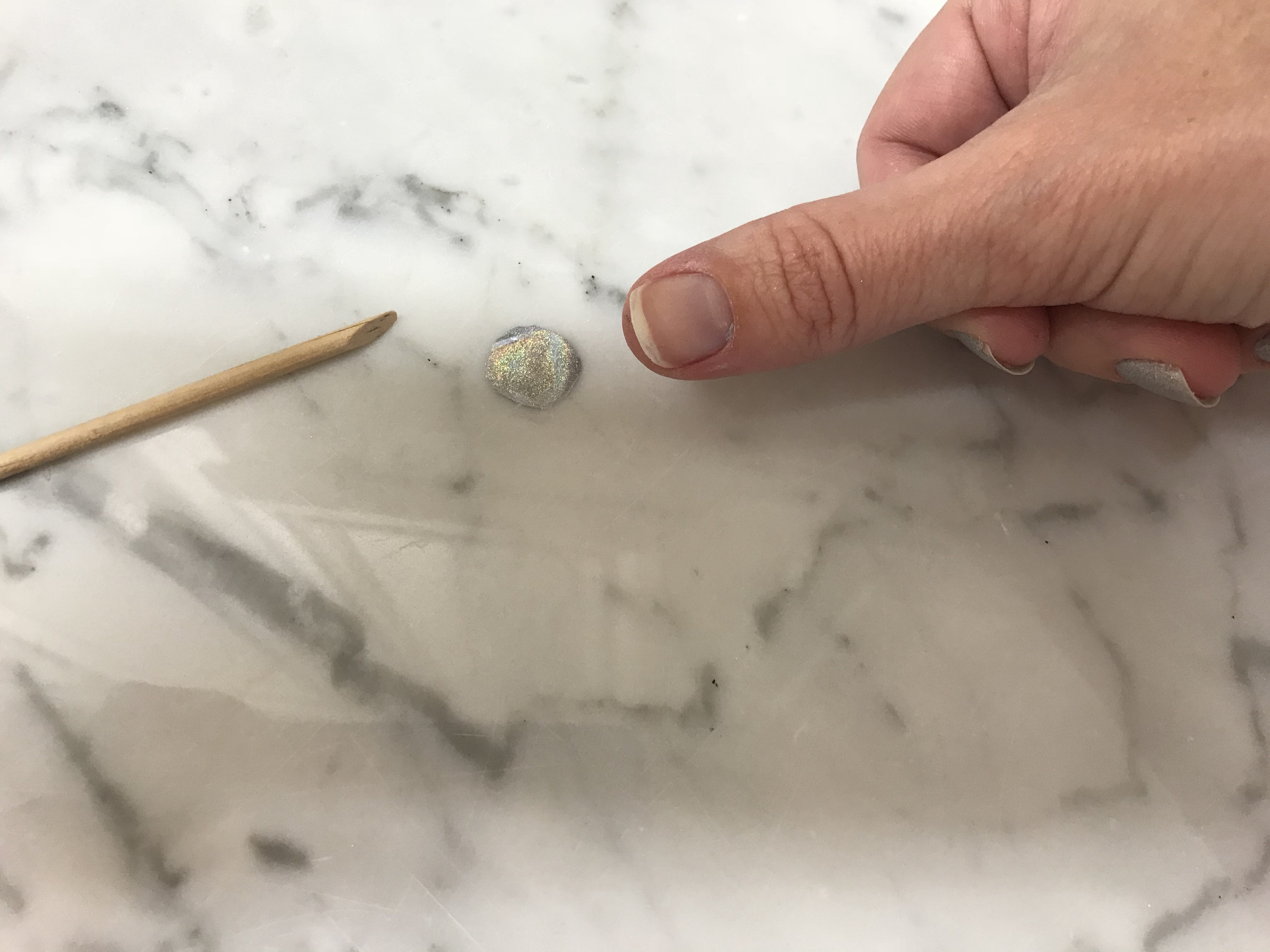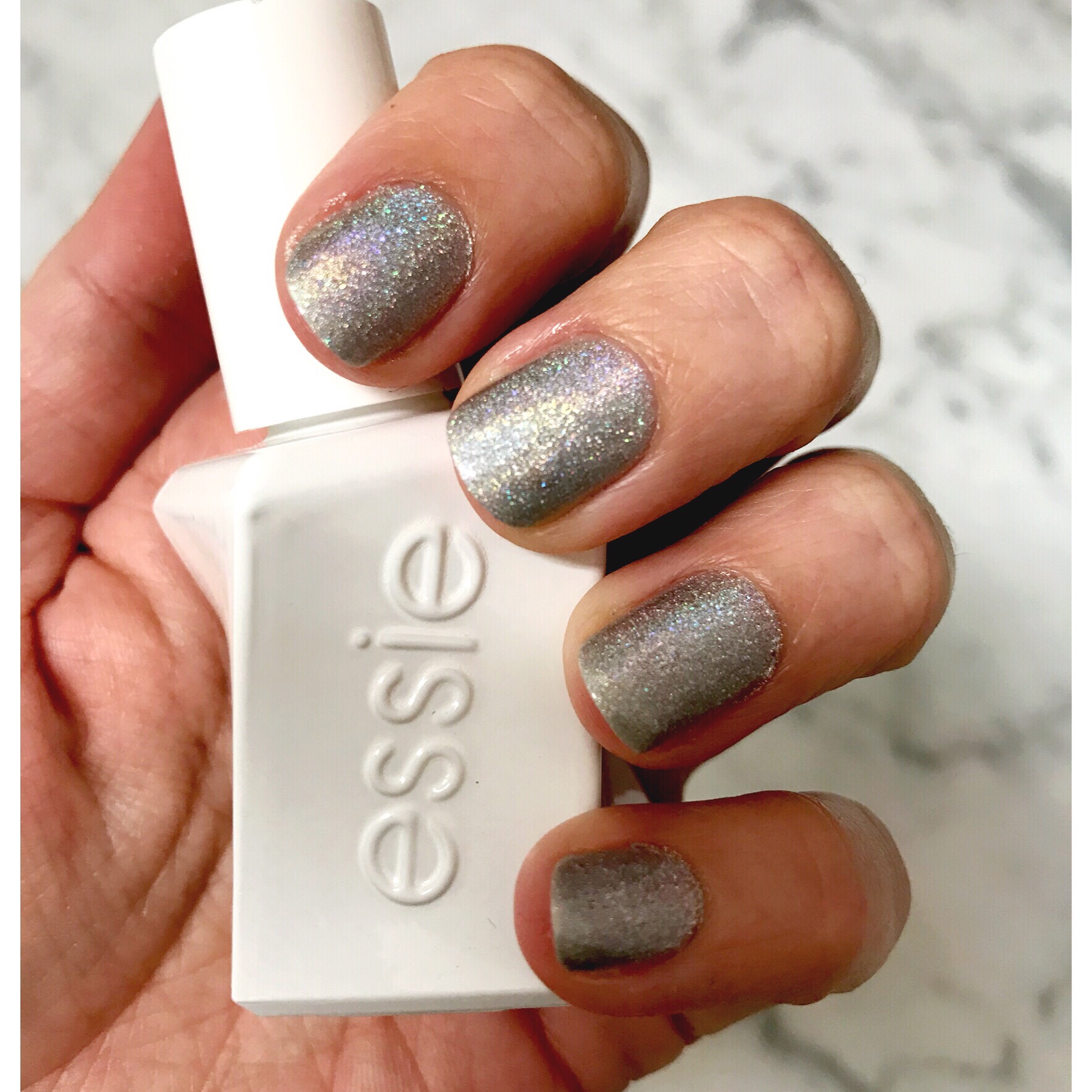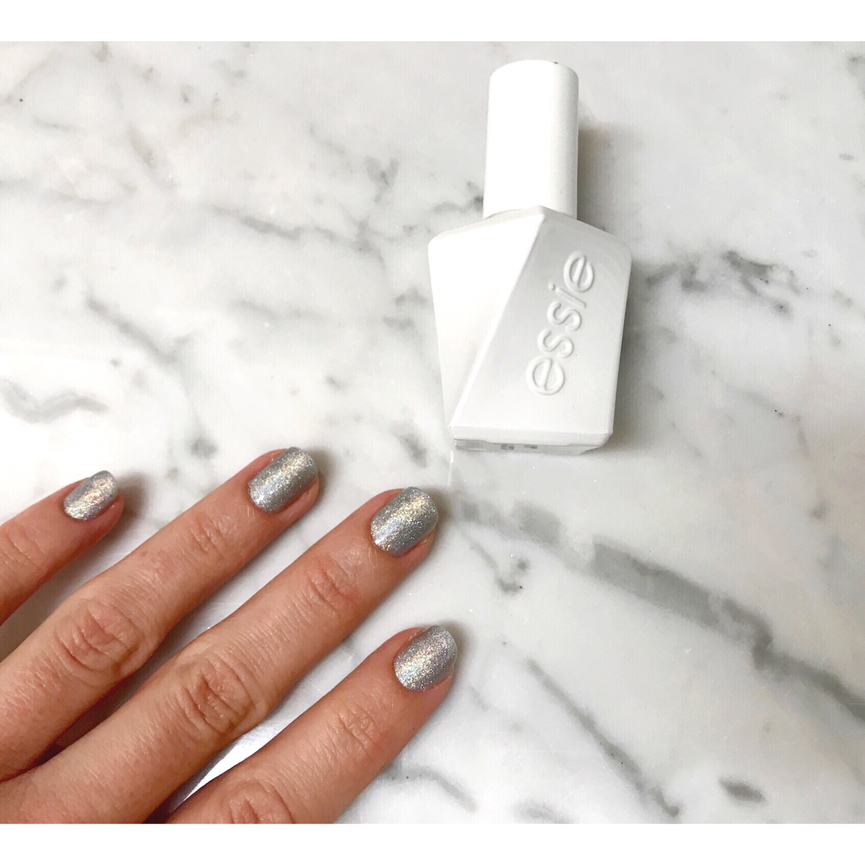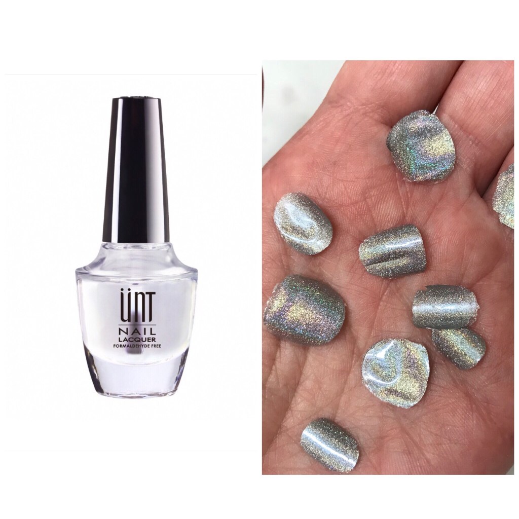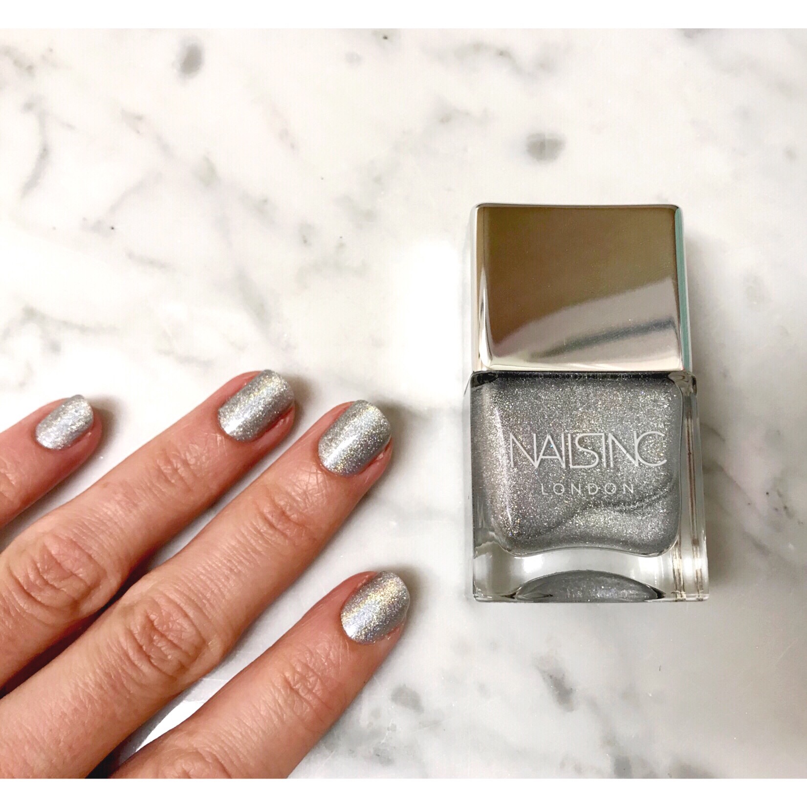 Next, I took one of my favorite glitter polishes, the Nails Inc Polish in Rocket Fuel, a silver holographic glitter, and applied two coats.