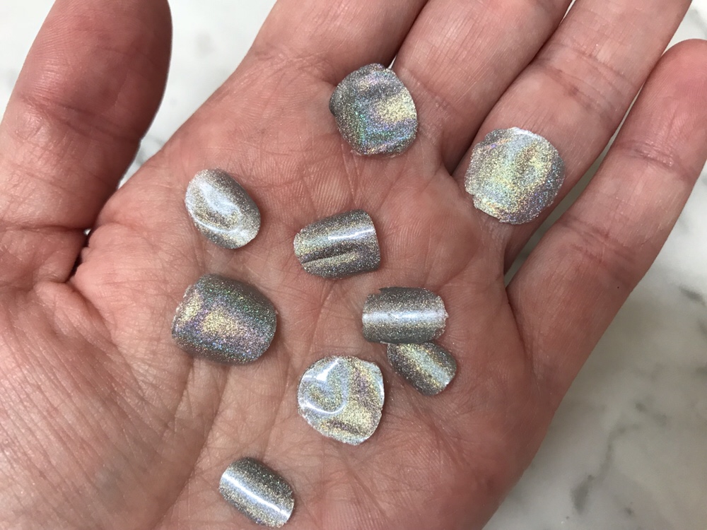 SO EASY! SO QUICK! Doesn’t leave any residue on my nails and doesn’t damage them by peeling. This stuff is amazing! No more scraping to get the glitter off, thank goodness.