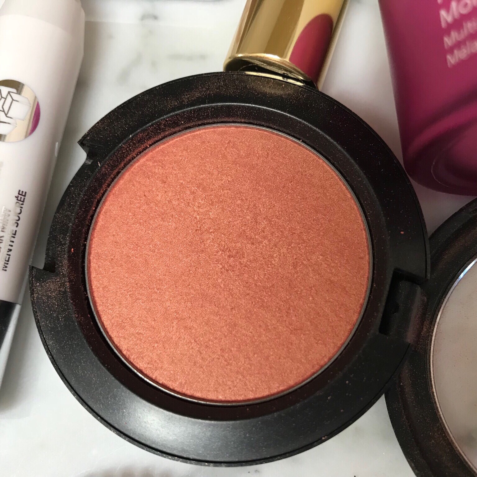 Ohhh it’s so pretty. It is a sheertone blush, so it’s buildable, which I like. I don’t like super pigmented blush. This is a really nice one and stays on all day.