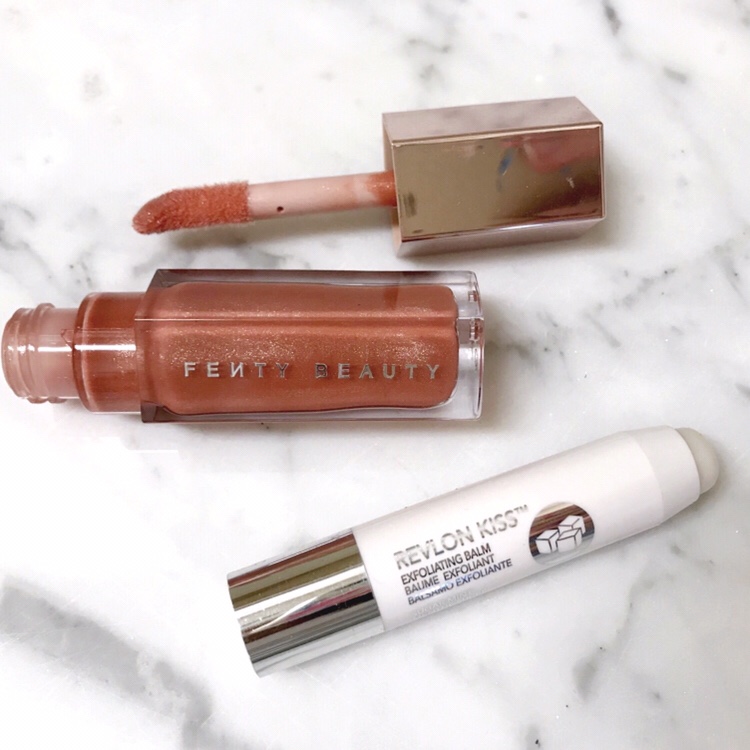 First is this Fenty Gloss Bomb in Fenty Glow. I believe this is the only shade this comes in (they are releasing a pearly one soon though!) and it is just the perfect gloss. Not sticky, smells delish, and has a beautiful color and shimmer. Go look at the reviews! I’m not the only one who loves it. Here it is next to the blush.