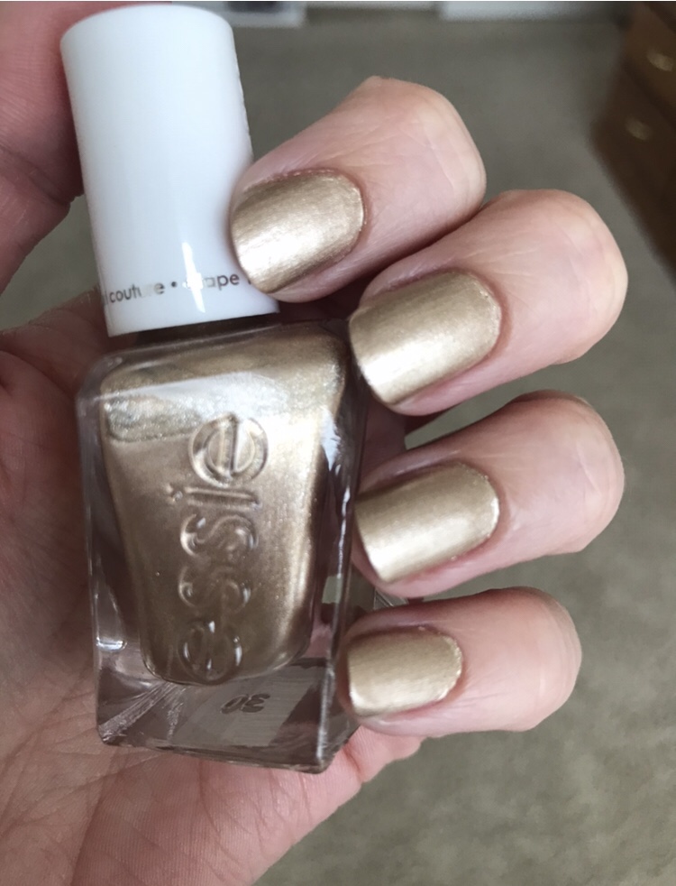 I’ve got two nail colors that have been on rotate this month. They are both shiny metallics, which I always gravitate towards. Essie Gel Couture in Daring Damsel is a pewter gold color that is so nice and not streaky. Essie Gel Couture is my favorite for long lasting nail color.