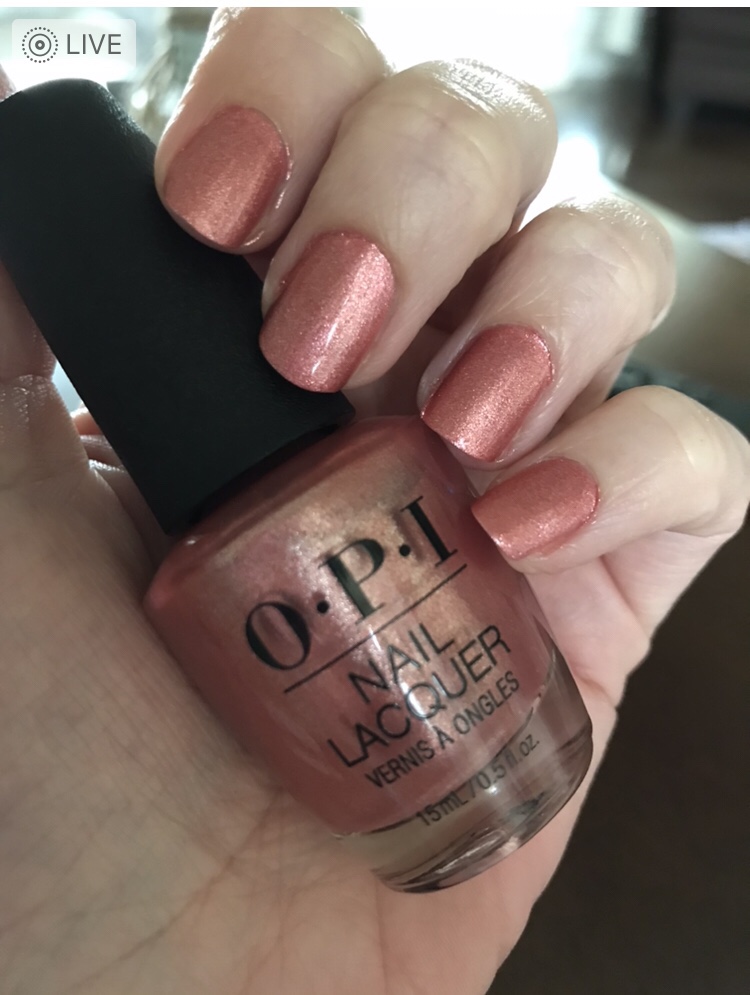 The other color is OPI Cozu-melted in the Sun. This is a sparkly rose gold color that is from OPI’s summer collection. This color is beautiful!