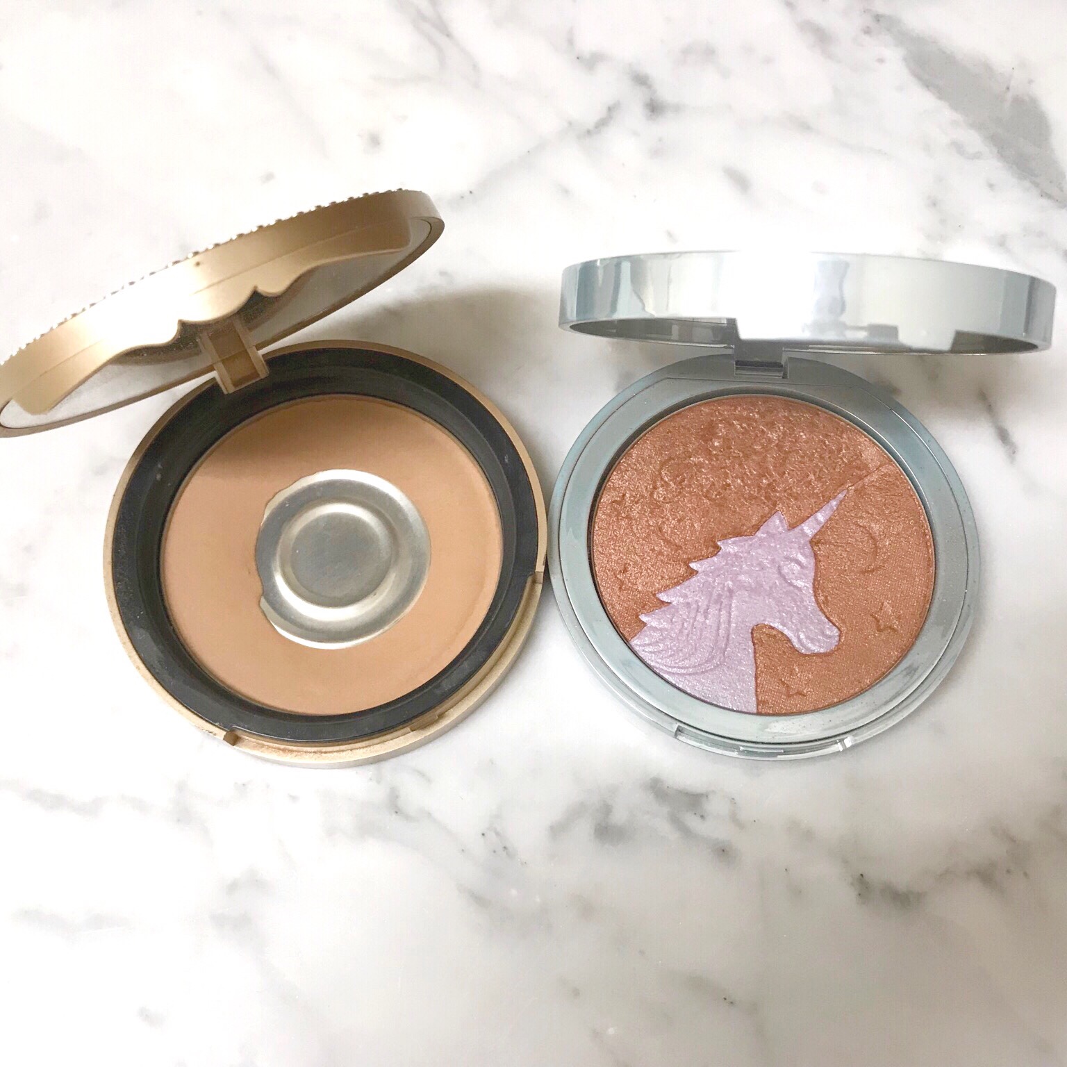 For bronzer, I love Too Faced. As you can see, the Milk Chocolate Soleil has been well loved, and a new one for me this year was the Unicorn Bronzer. The Milk Chocolate is matte, and lighter than the Unicorn, while the Unicorn gives a little bit of a sheen and is darker. Love this one for the summer. I’m trying to save the Unicorn though, so I only use the top part. 🙂