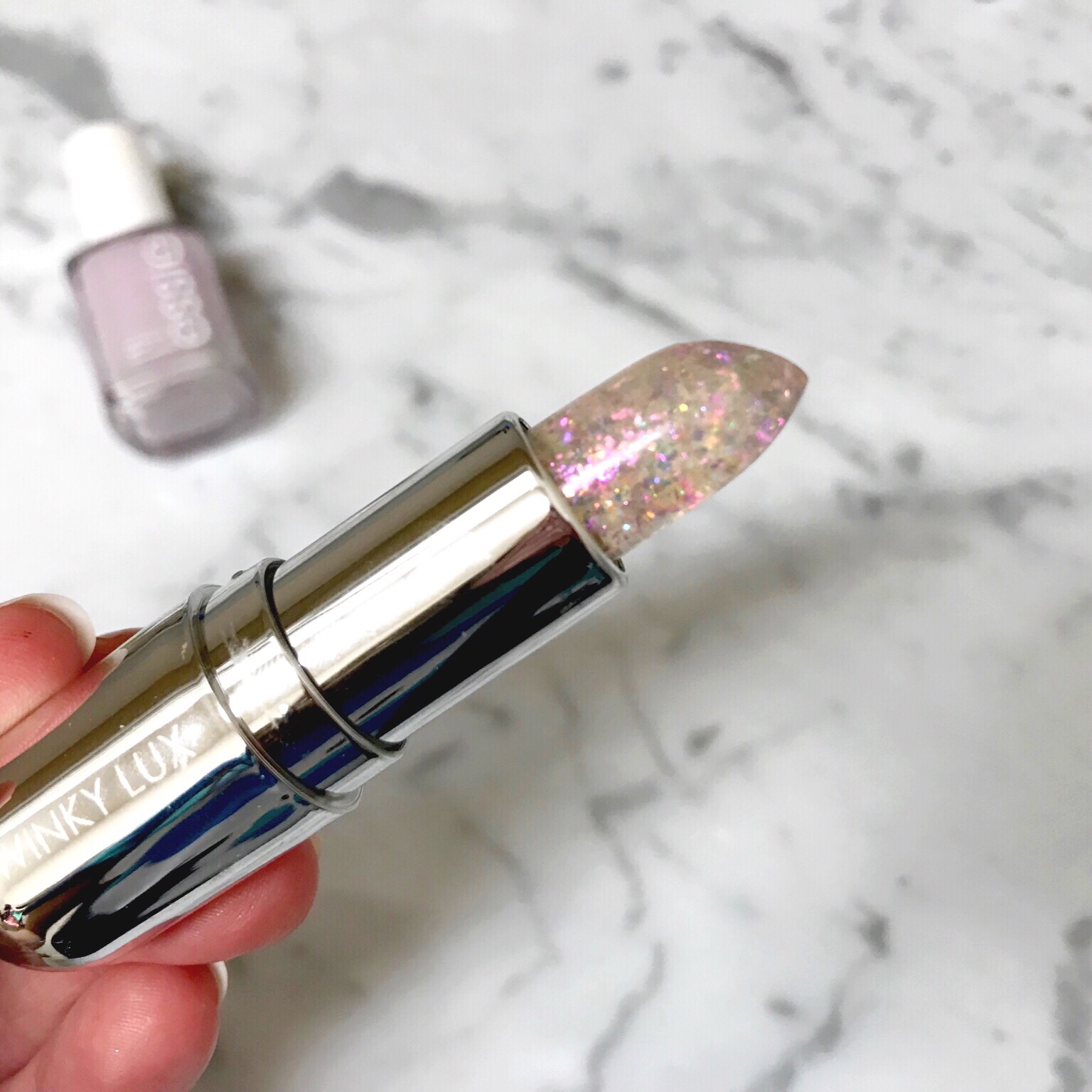 Next is this ADORABLE Winky Lux lippie. This is the Confetti Balm, and it came in a set with a Mini Disco Kitten Gloss in Hustle (which is my fave also) and a cute little kitten pouch. I LOVE Winky Lux. So, this lip balm is clear with glitter inside. It is so pretty and I love the sleek silver packaging. It looks clear, but once you apply it, it changes to a pink shade. It’s kind of like a tinted balm. It smells like vanilla and keeps my lips soft.
