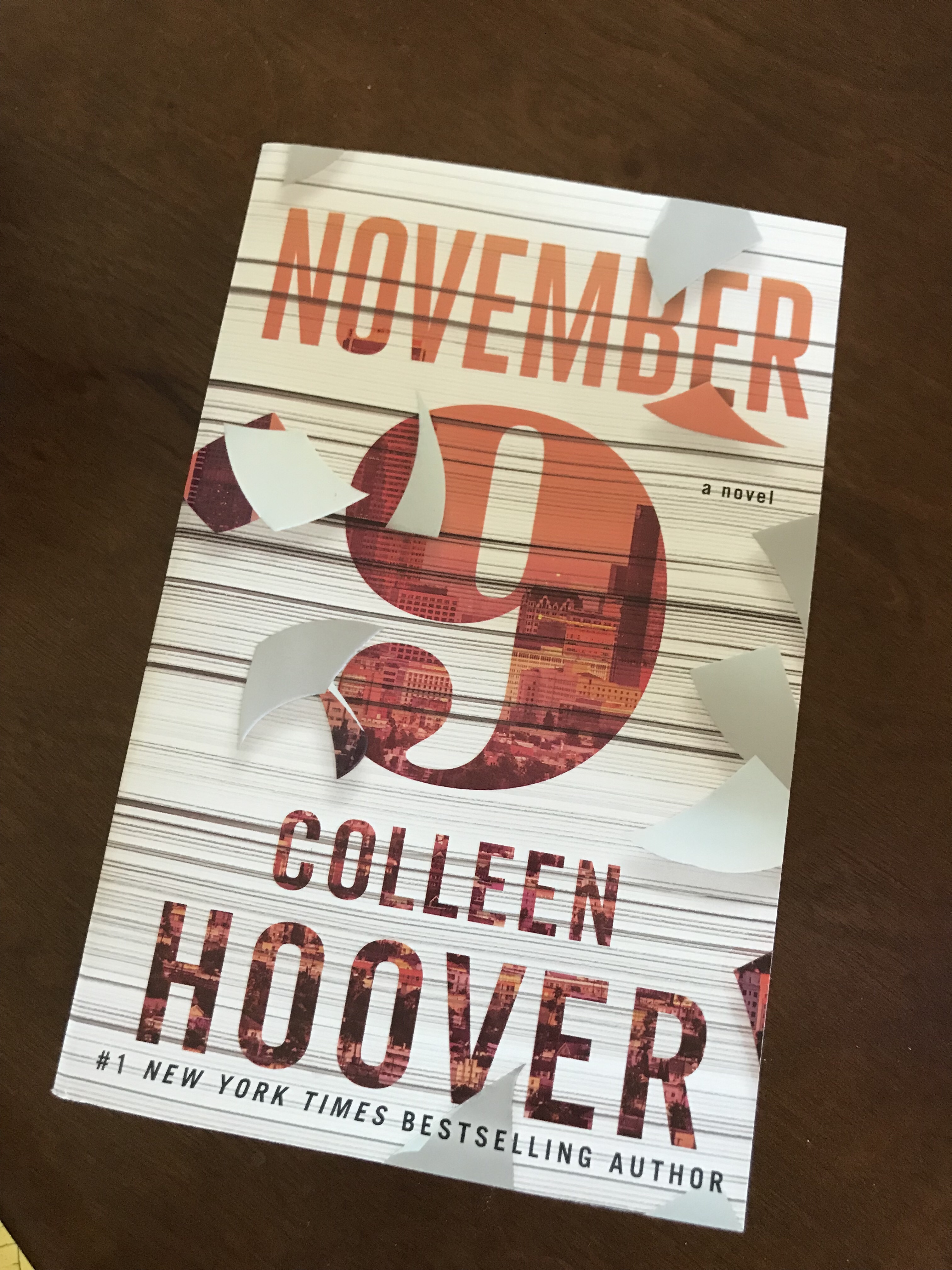 This book is about a girl named Fallon, who is preparing to move across the country to begin a new life after being burned badly at her home in a fire. She is having lunch with her Dad when she randomly meets this guy, Ben, and they really hit it off. Since she is moving away, they agree to meet every year on November 9th, the day that they met. They live their separate lives, but always come back to each other on that day. Ben starts writing a novel about Fallon and her life, and when Fallon finally reads it after falling in love with him, she finds out a shocking surprise.