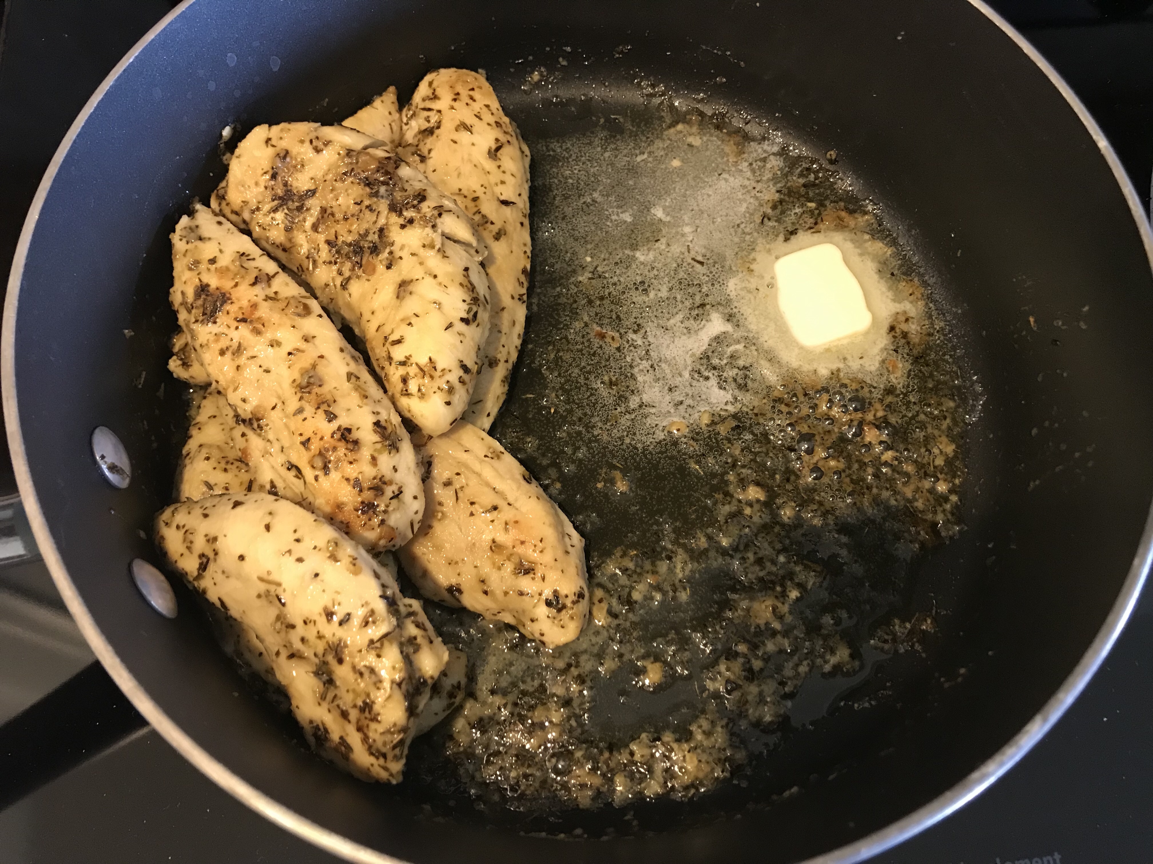 After chicken is cooked through, scoot to one side and melt the remaining tbsp of butter.