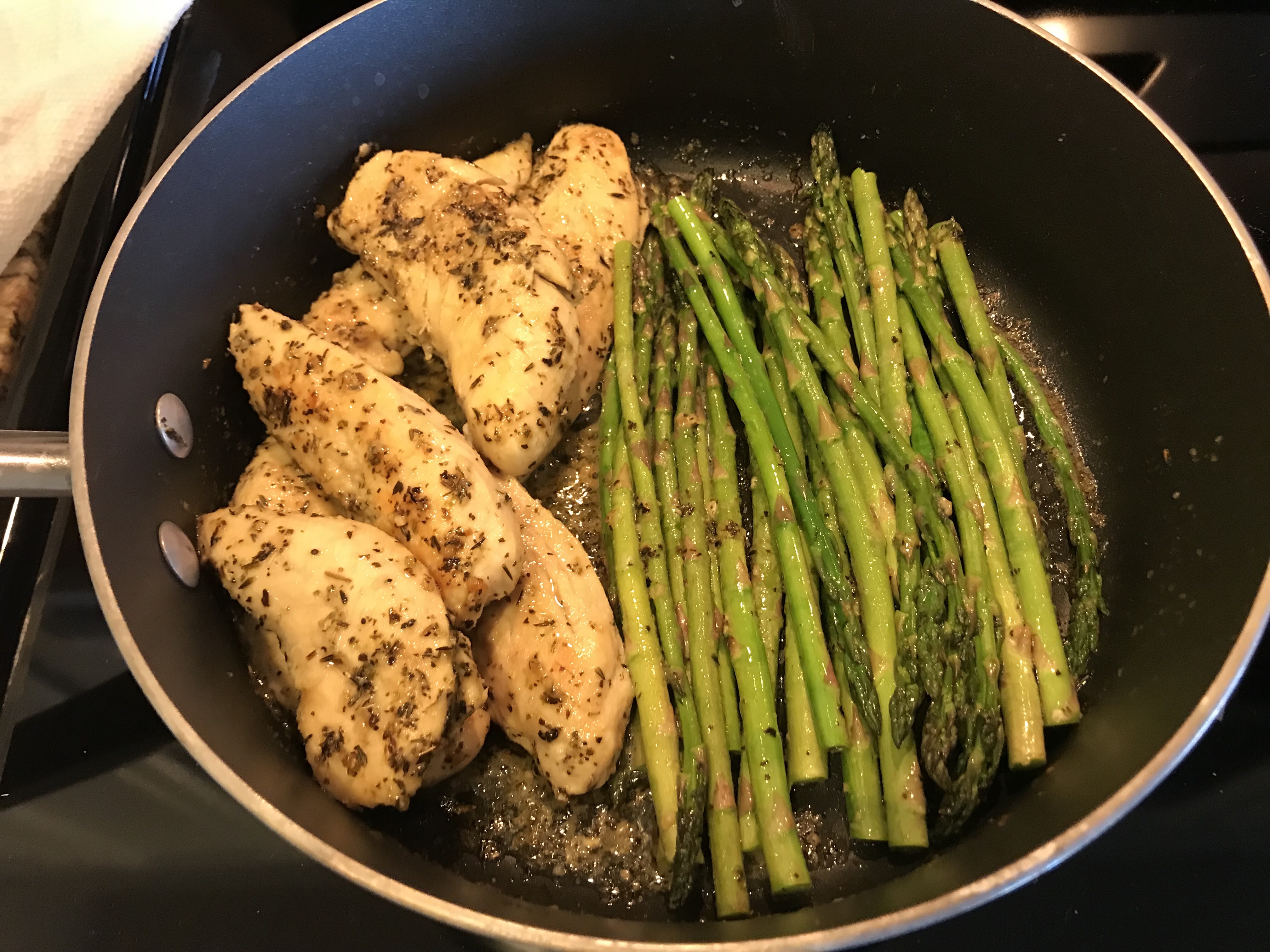 Today I am sharing my recipe for chicken and asparagus. My whole family loves this recipe (yes, even the girls- they love veggies!) and it’s really flavorful and semi-healthy (it has butter, lol).