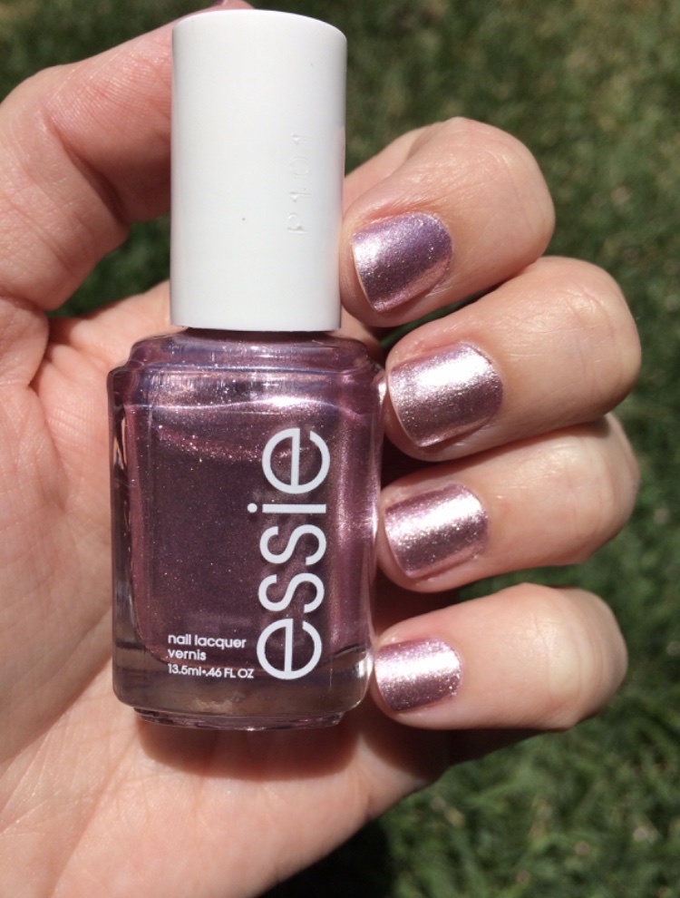 This is a deeper purple-pink color with silver shimmer. I get so many compliments when I wear this one! Two coats and you’re good.